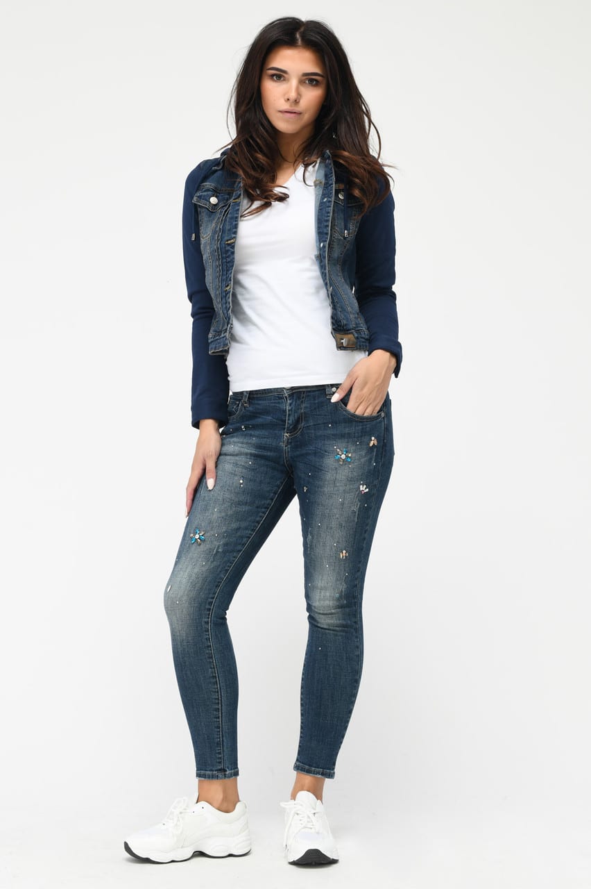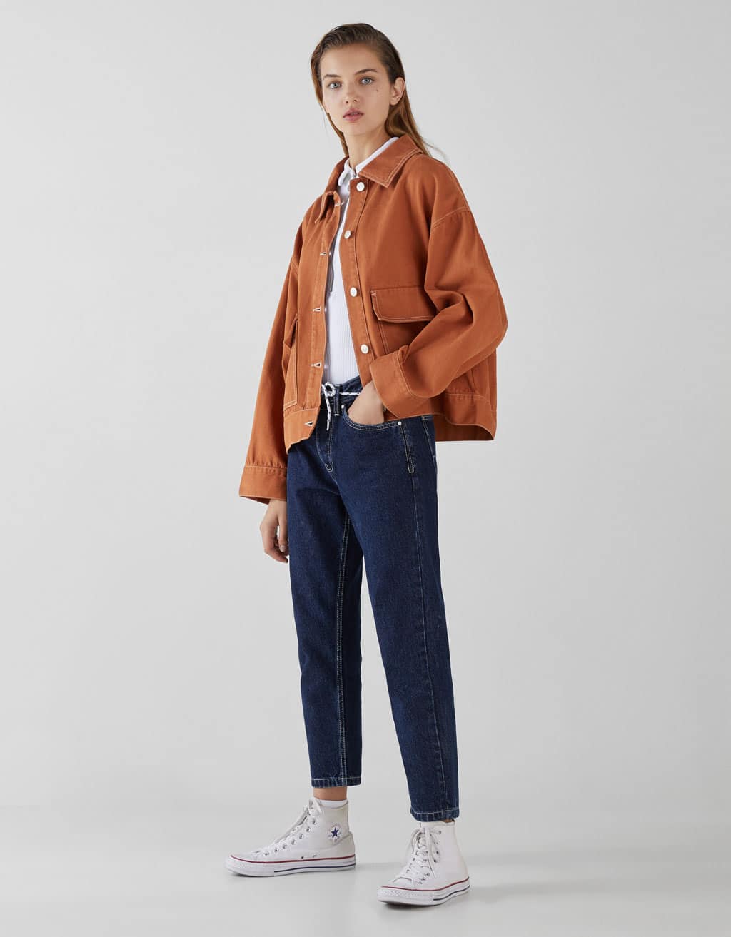 In this combination, you can safely choose any style of jeans. This can be skinny skinny jeans, banana jeans - greetings from the 90s, as well as simple classic models. Choose light blue shades for a light denim denim jacket. By the way, under tight jeans you can choose a short jacket model.