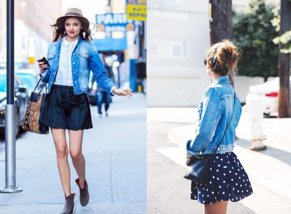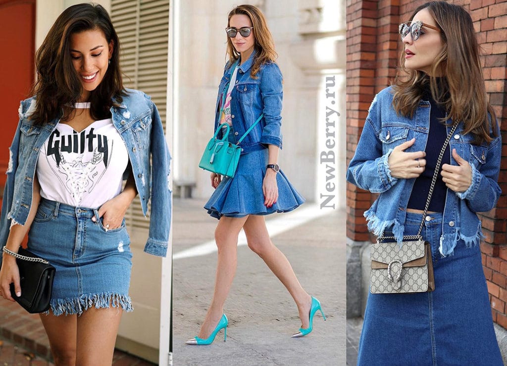 Here the tips are similar, as in the option of wearing a dress with denim jackets. Only in this case you can choose any top in combination with a skirt. By the way, there can be any kind of skirt. Such as skirt year, pencil skirt, sun skirt, tulip skirt and others.