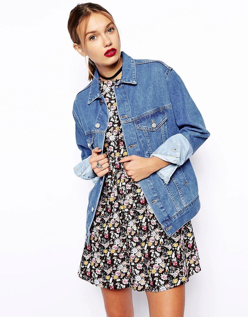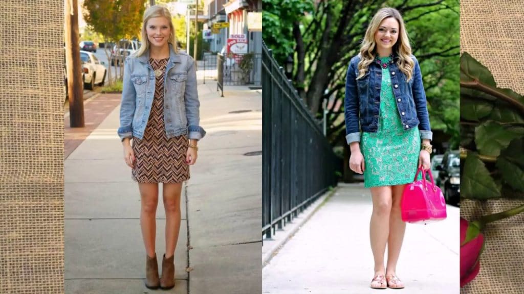 A very interesting combination in which your femininity will open even more. Because dresses in combination with a denim jacket look stylish and romantic. You can choose bright models of dresses, both short models and floor lengths. They can have bright plain colors or a floral print.