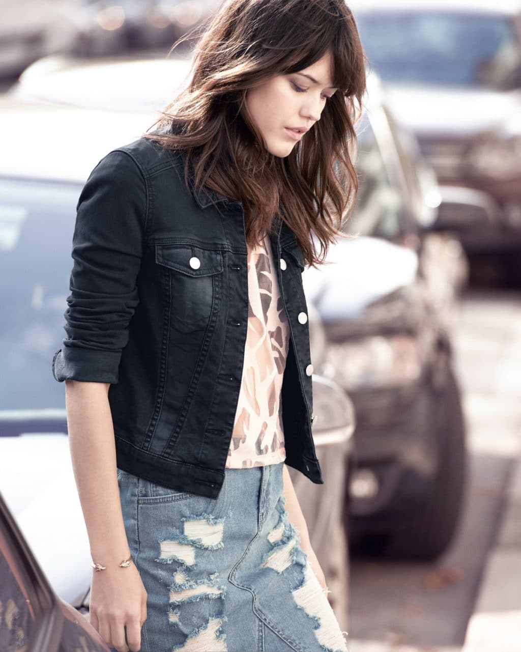 It is especially convenient that the jeans jacket has a different style. There are long models, short ones, as well as models of classical length. The most interesting thing is that such a denim jacket can have not only a standard blue color. There are models in white, black or burgundy. Here, the main thing is to choose exactly the option that will be best suited to your color type.