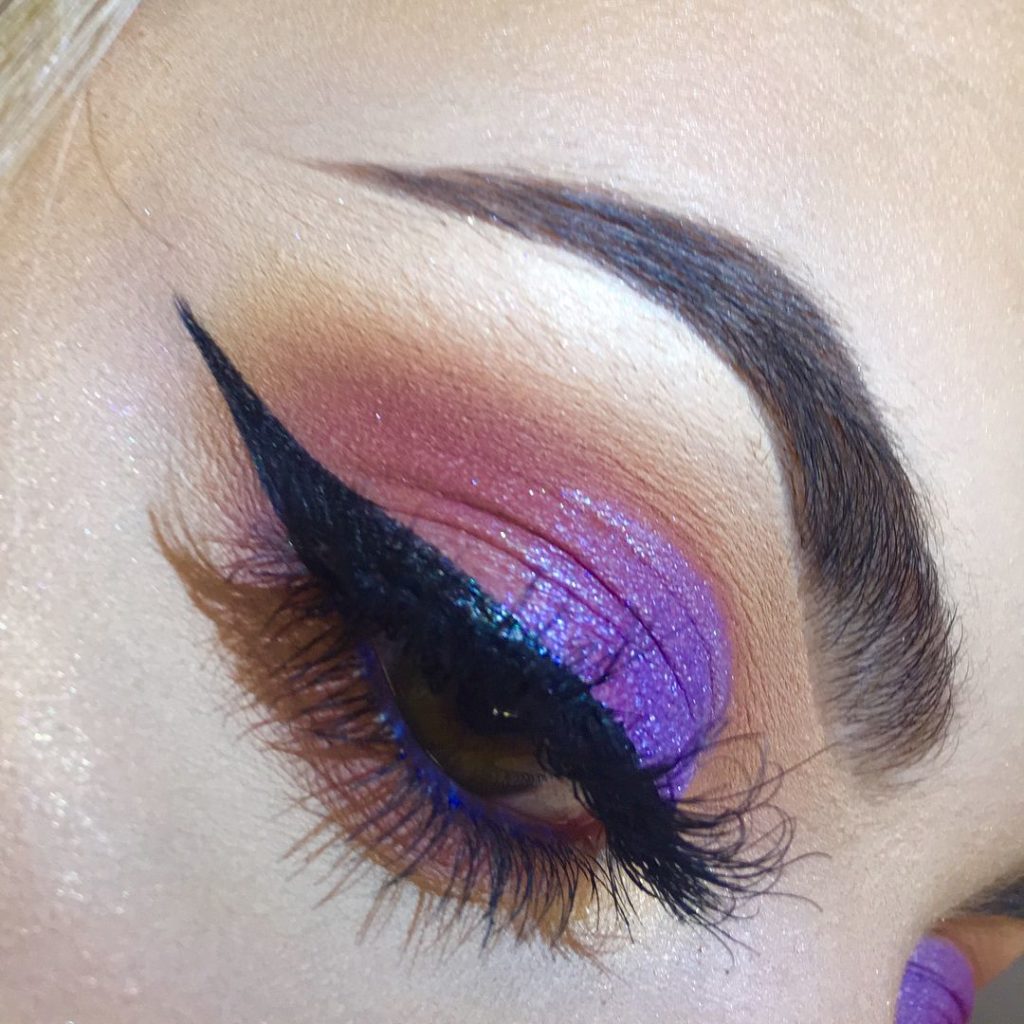 The brightest and deepest shades of purple, such as the color of evening haze, orchids, indigo, eggplant, plum, etc., are chosen in the color palette of this makeup.