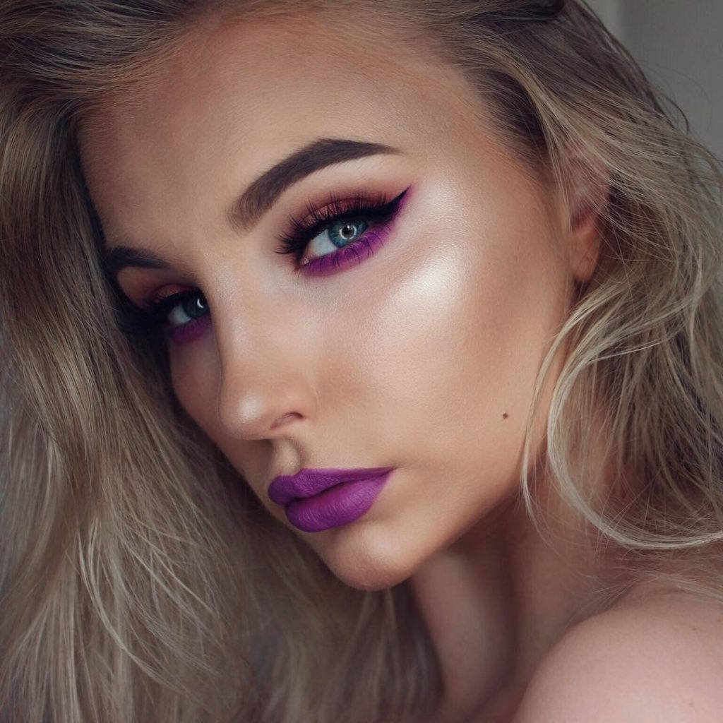 Intense purple makeup is chosen by daring girls who are not afraid of experiments. Such a bright makeup should not be done for the first time and immediately go to the event. In such a bright make-up, every movement should be clear and precise.