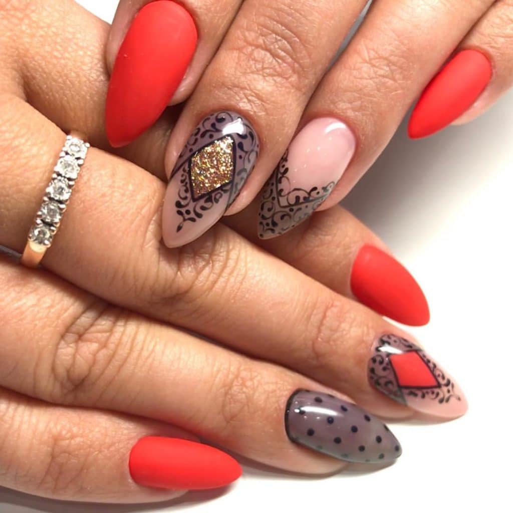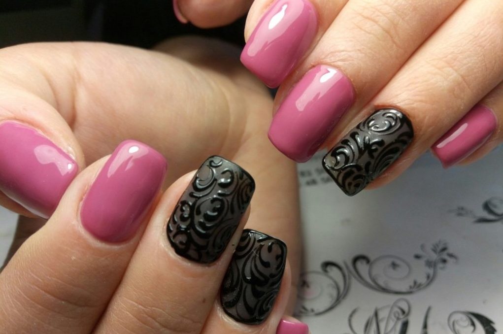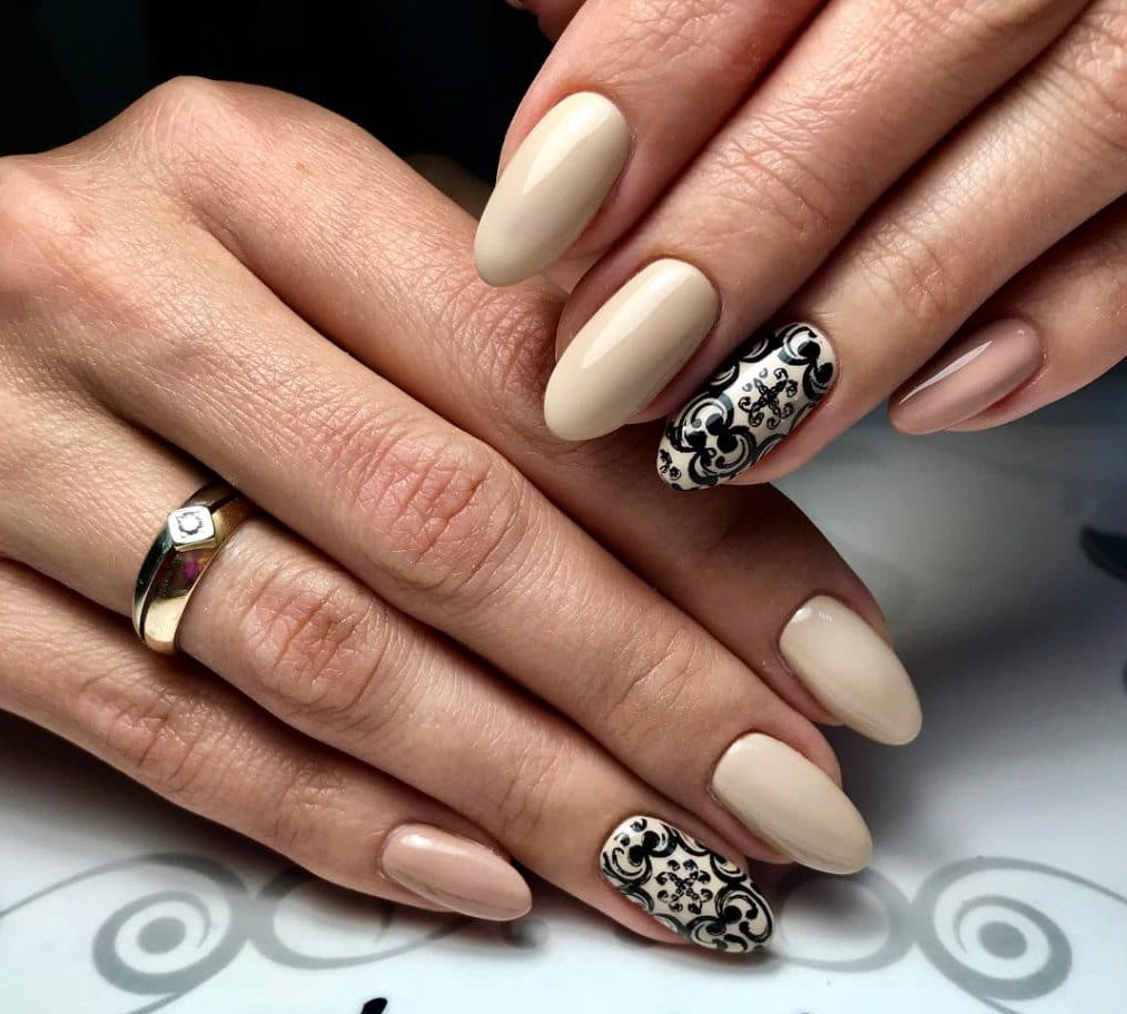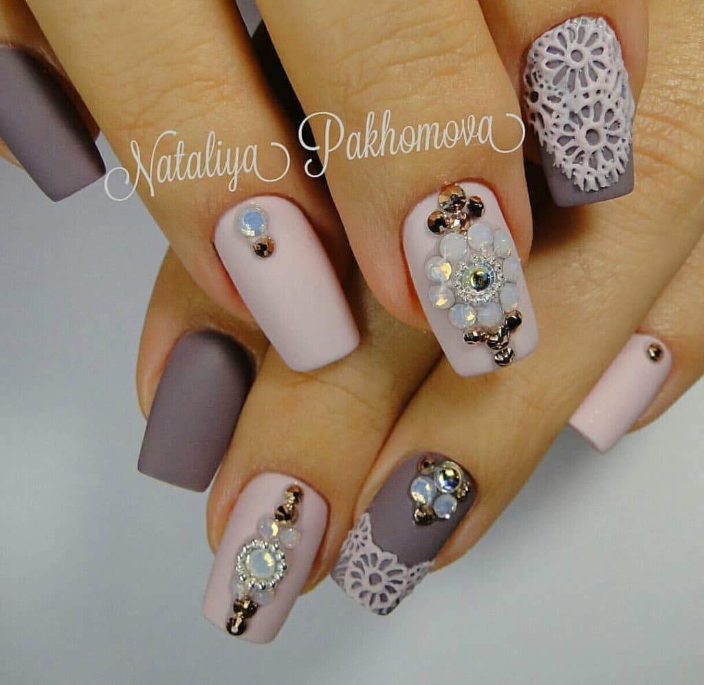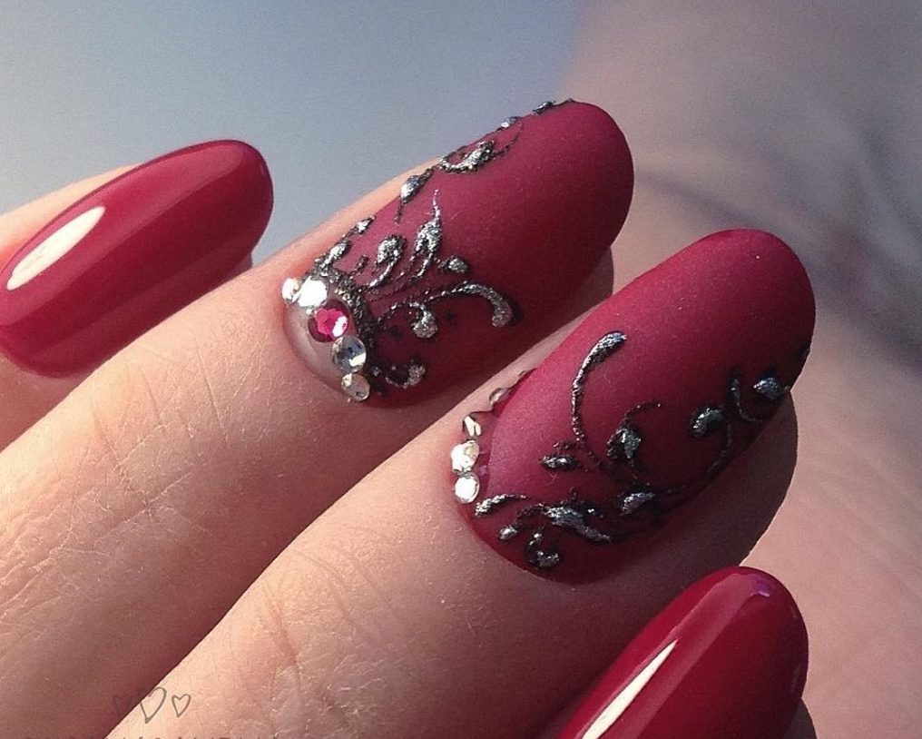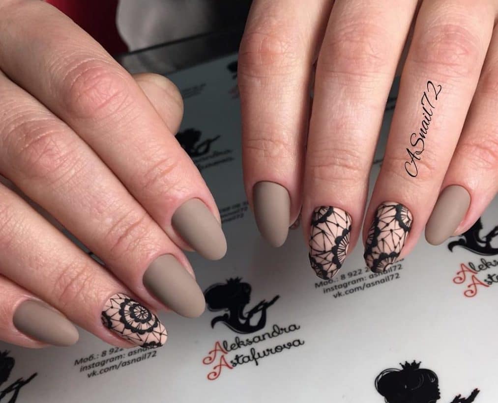 Openwork drawings are limited in their execution only to the imagination of your master. They can have a different shape, and in some cases have a convex structure. Your matte finish can be any color. In combination with dark options, white is the best color for lace. In this combination, two colors will be successfully ascertained with each other without drowning each other.
