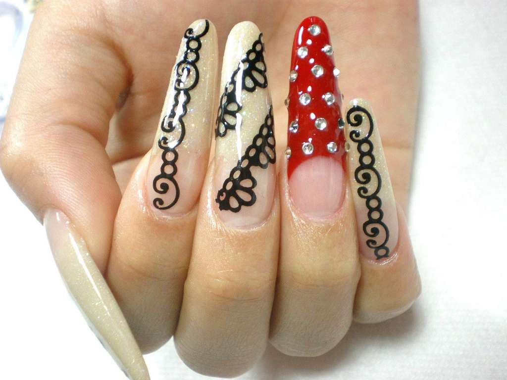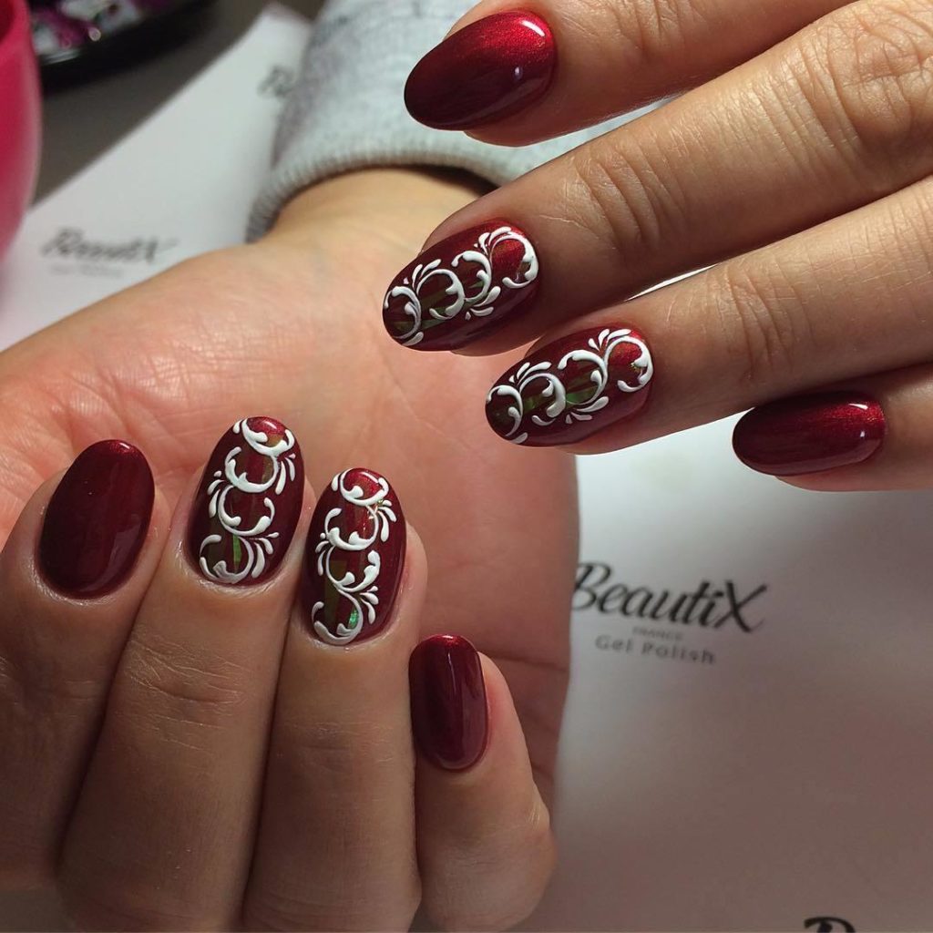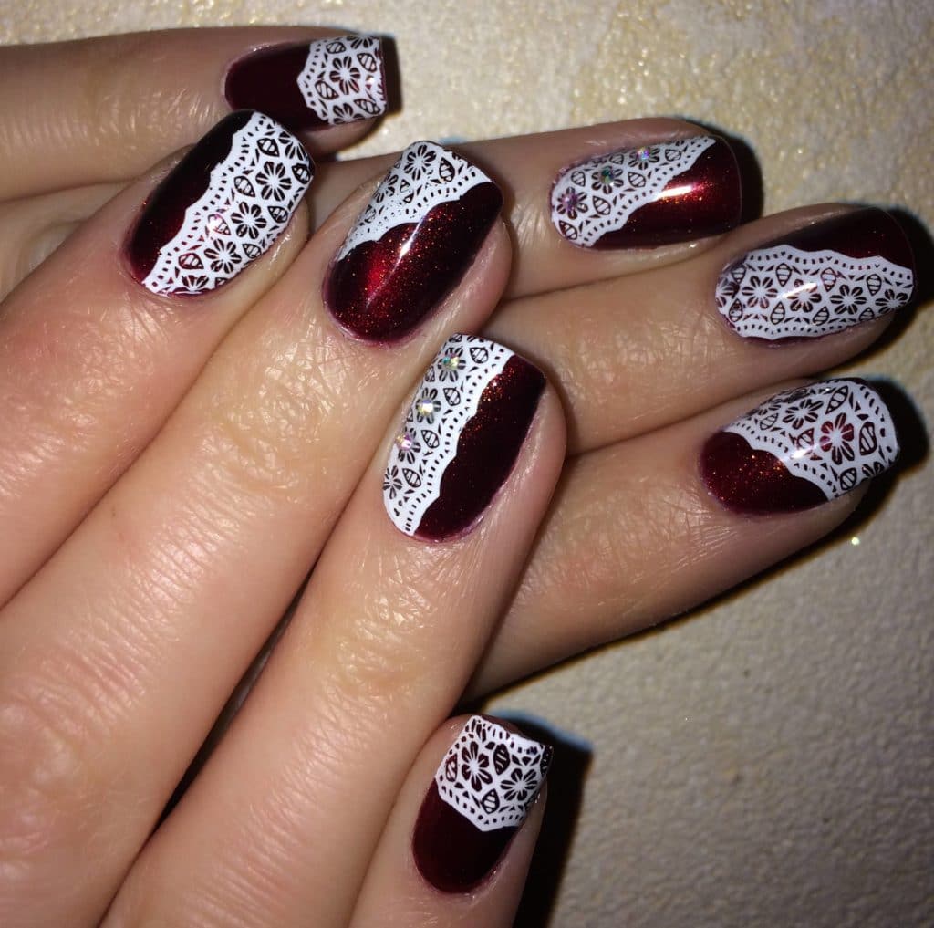 If you do not have a classic white dress, but his other color scheme, then pick up a wedding manicure with a lace in the red version.You can still plain white, complement laced drawings in black.