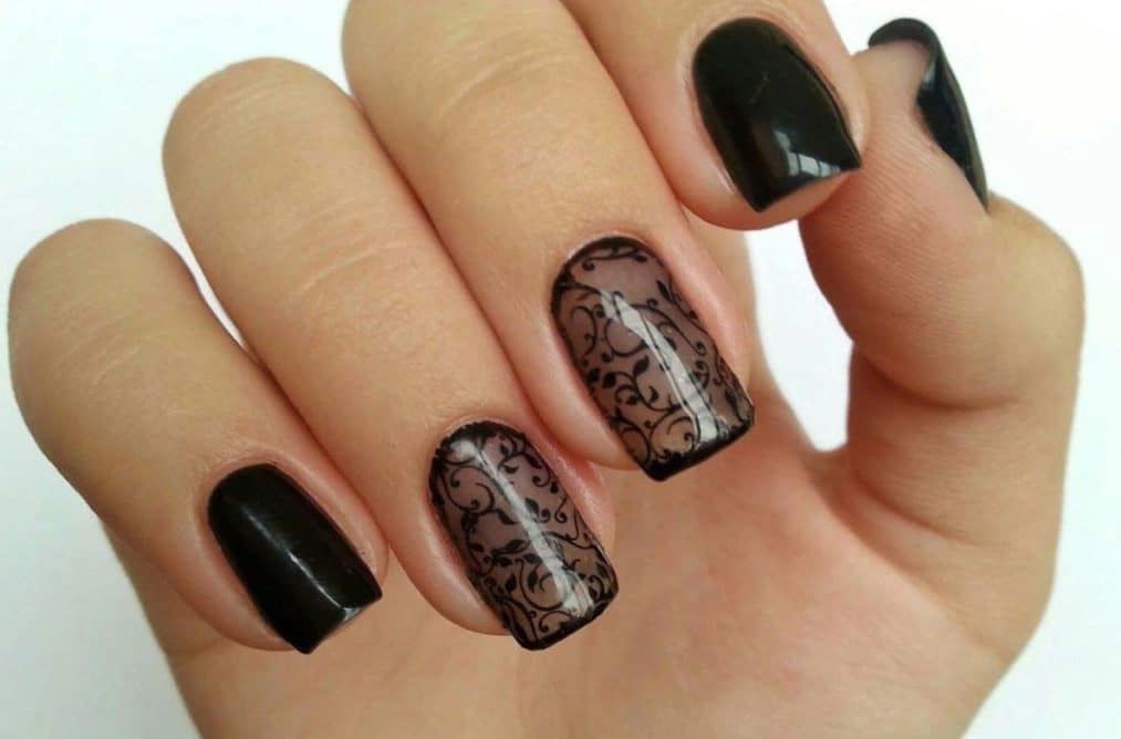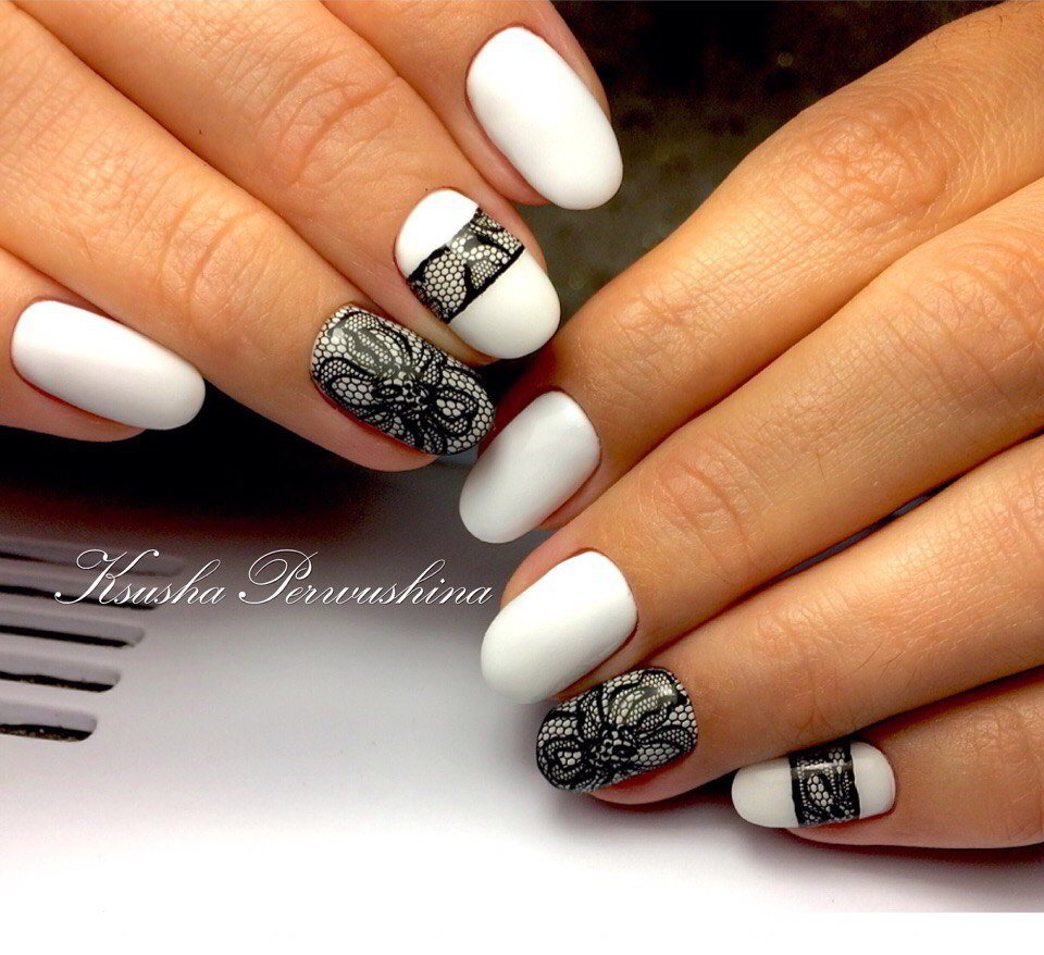 A good choice for nails of any length. After all, for some reason, we girls mistakenly believe that lace will look beautiful only on long nails. But this is not so! Openwork is perfect for short nails, if done in black or white. By the way, black macrame is considered the trend of the current year.