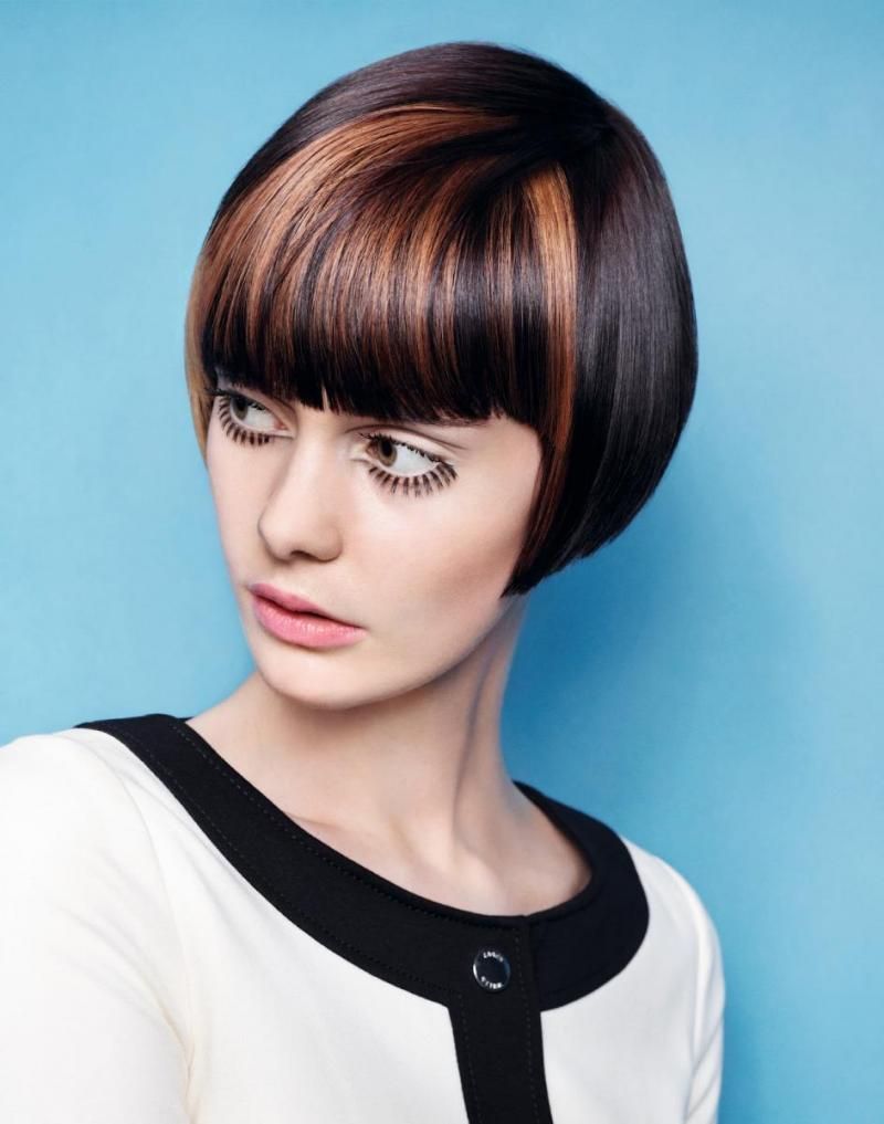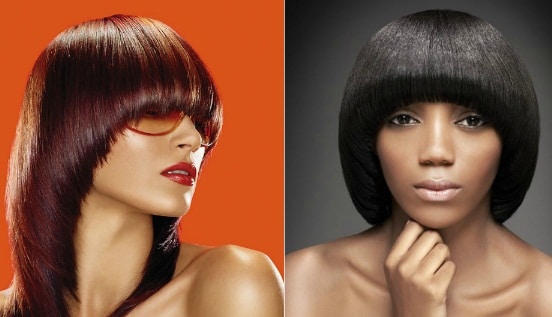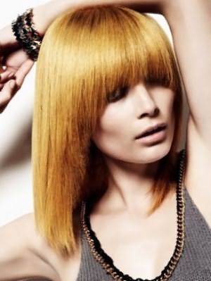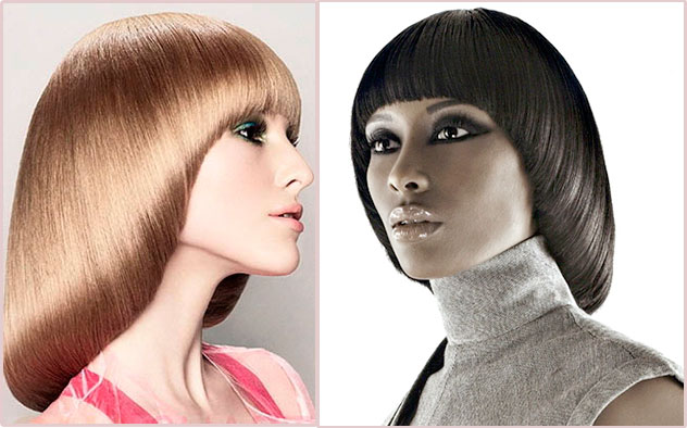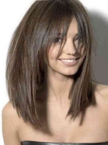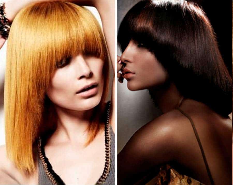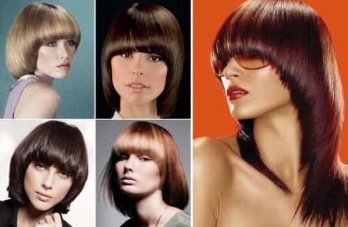 Oblique bangs will help to hide flaws, if any, and visually stretch your face.