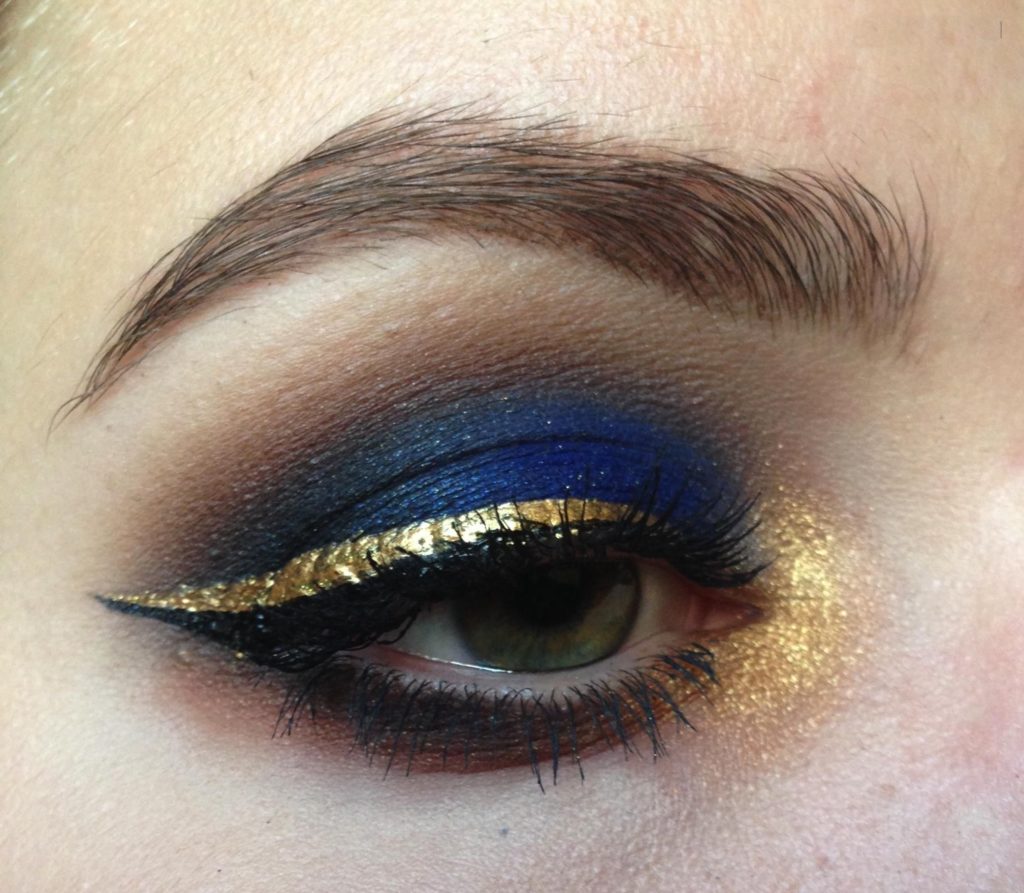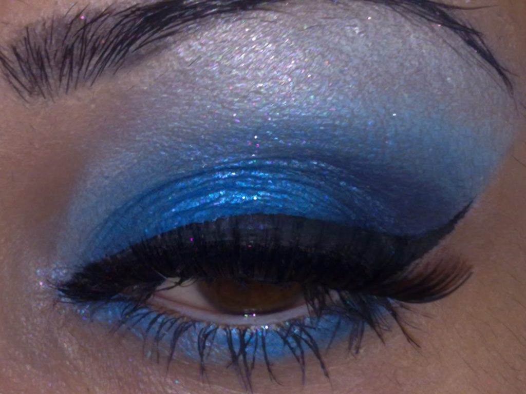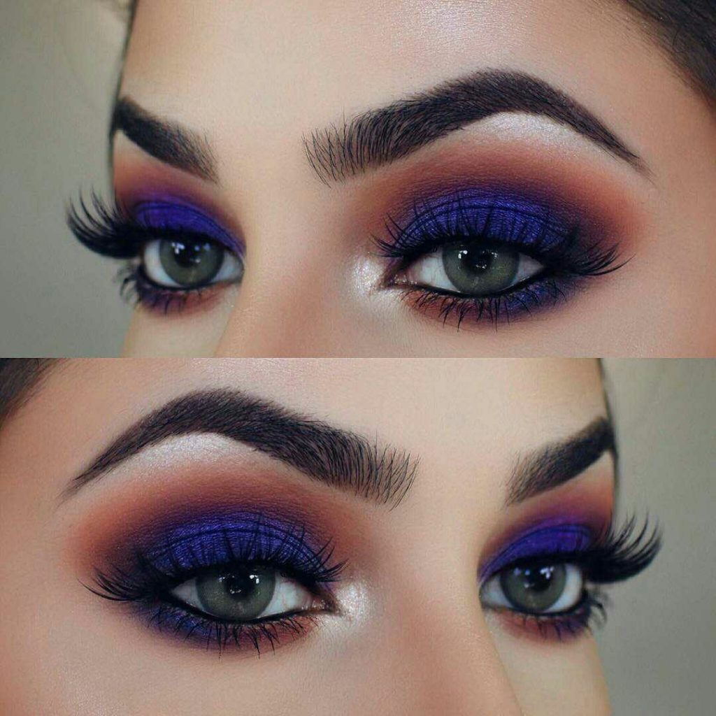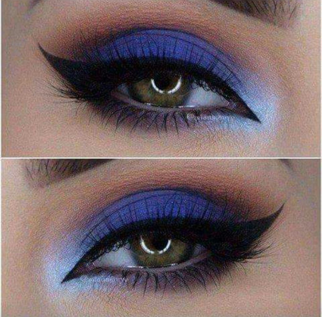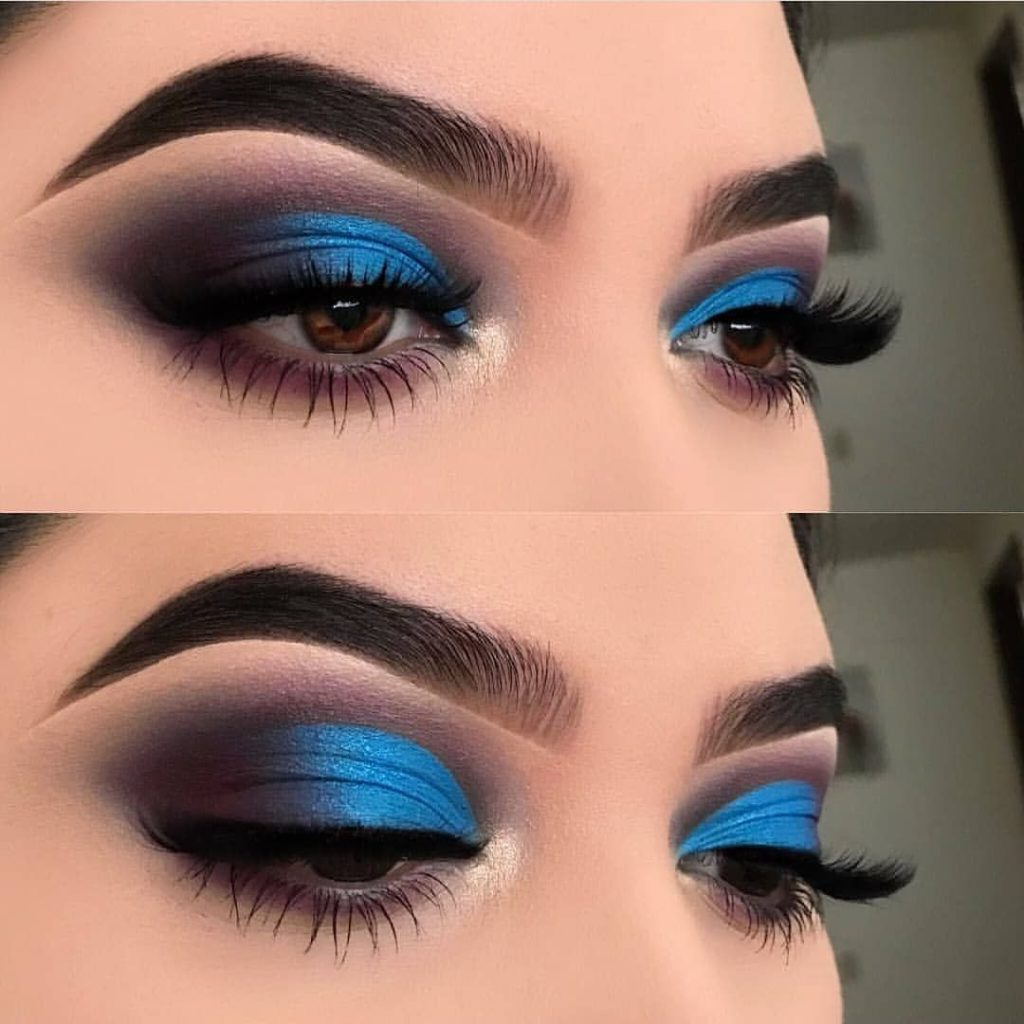 A make-up technique such as cut crease is presented in a smoky version (shading) on the upper eyelid and summing up the lower eyelid and mucous membrane. A particular feature of makeup is the traced fold of the eyelid. This makeup in blue looks great. The fold is drawn with a pencil or heavily pigmented shadows. In blue makeup, such a fold will look better in brown and gray.