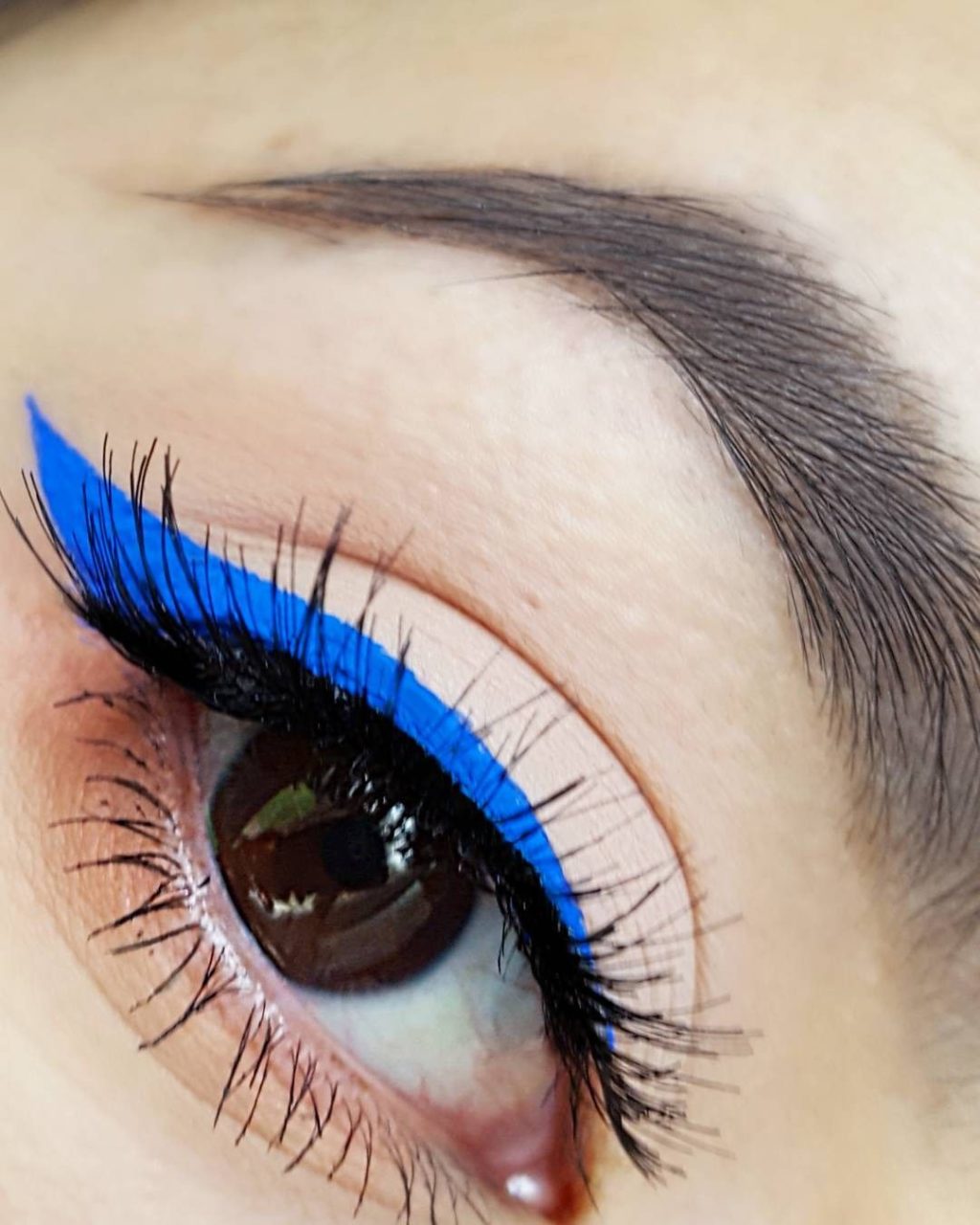 Blue arrows can easily be used in daily makeup, as this is not such a bright accent, be they pink or yellow.