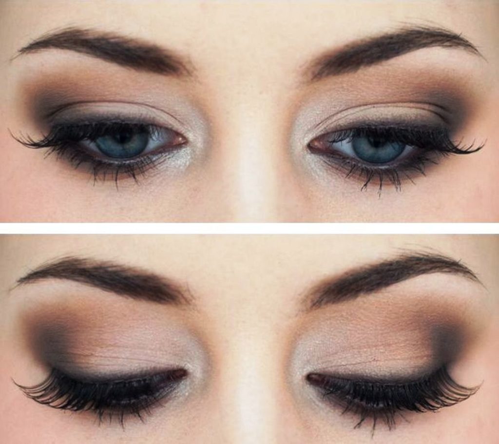 Gentle make-up for blue eyes will make your look puppet. This makeup uses the whole palette of beige shades, light pink, white and peach colors. The most important thing in this makeup is well-stained eyelashes and without ten layers of mascara. The classic eyelash extension will look gentle.