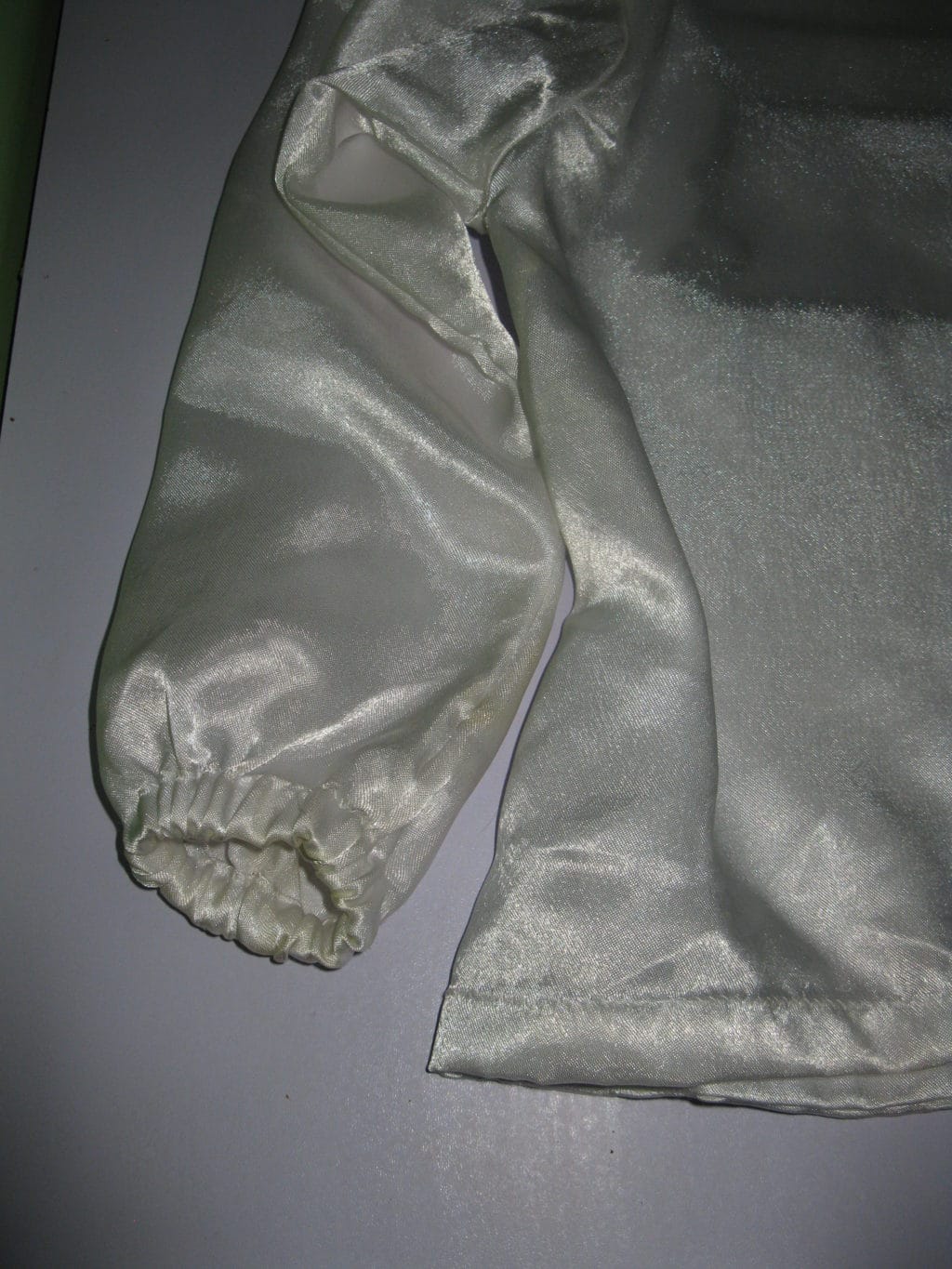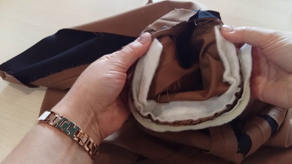 - We put the elastic over the stitch on the sleeve and attach it, not forgetting to pull it a little.