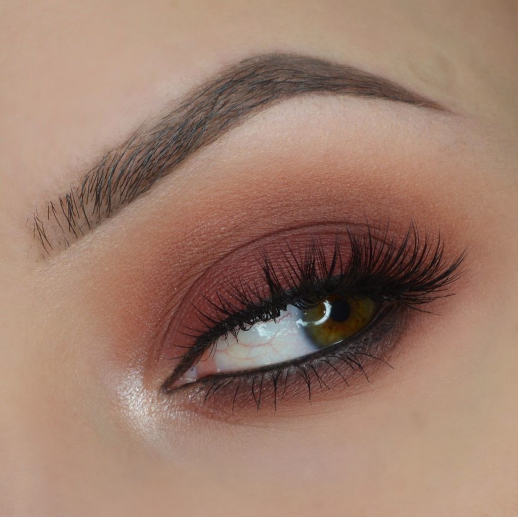 Solid makeup will always be a great option for those who do not have time to come up with sophisticated makeup or simply do not have time. For girls with green eyes for plain makeup it is better to choose colors such as beige, brown, bronze, gold, green, dark red, gray, etc. To give the eyes expressiveness, a brown shade can be applied to the outer fold of the eyelid.