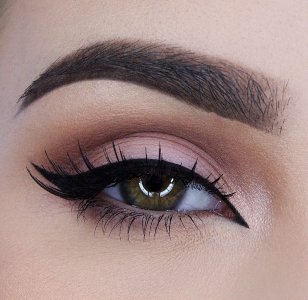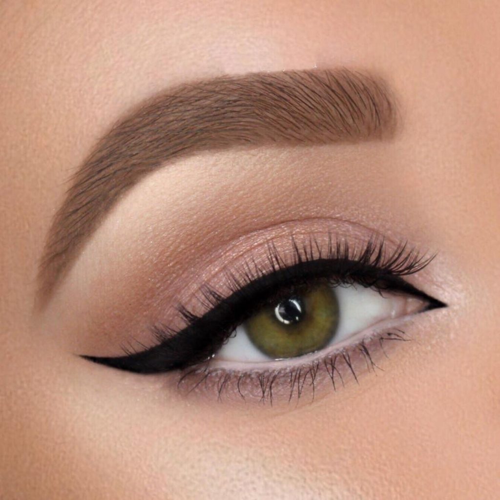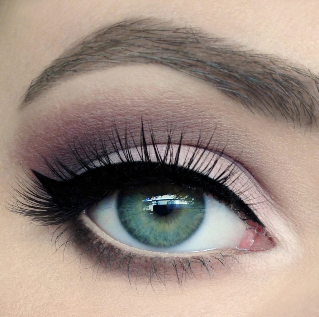 Probably the best makeup option for all girls is light makeup. Light makeup will always help make green eyes very soft and at the same time saturated. The best colors for the foundation of such makeup will be beige, peach, gentlypink, light brown, gold, light purple. Perfectly complement this makeup neat little arrow, drawn with a pencil or eyeliner.
