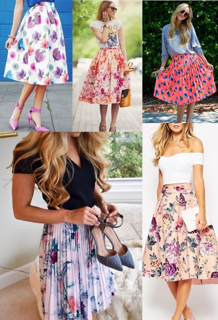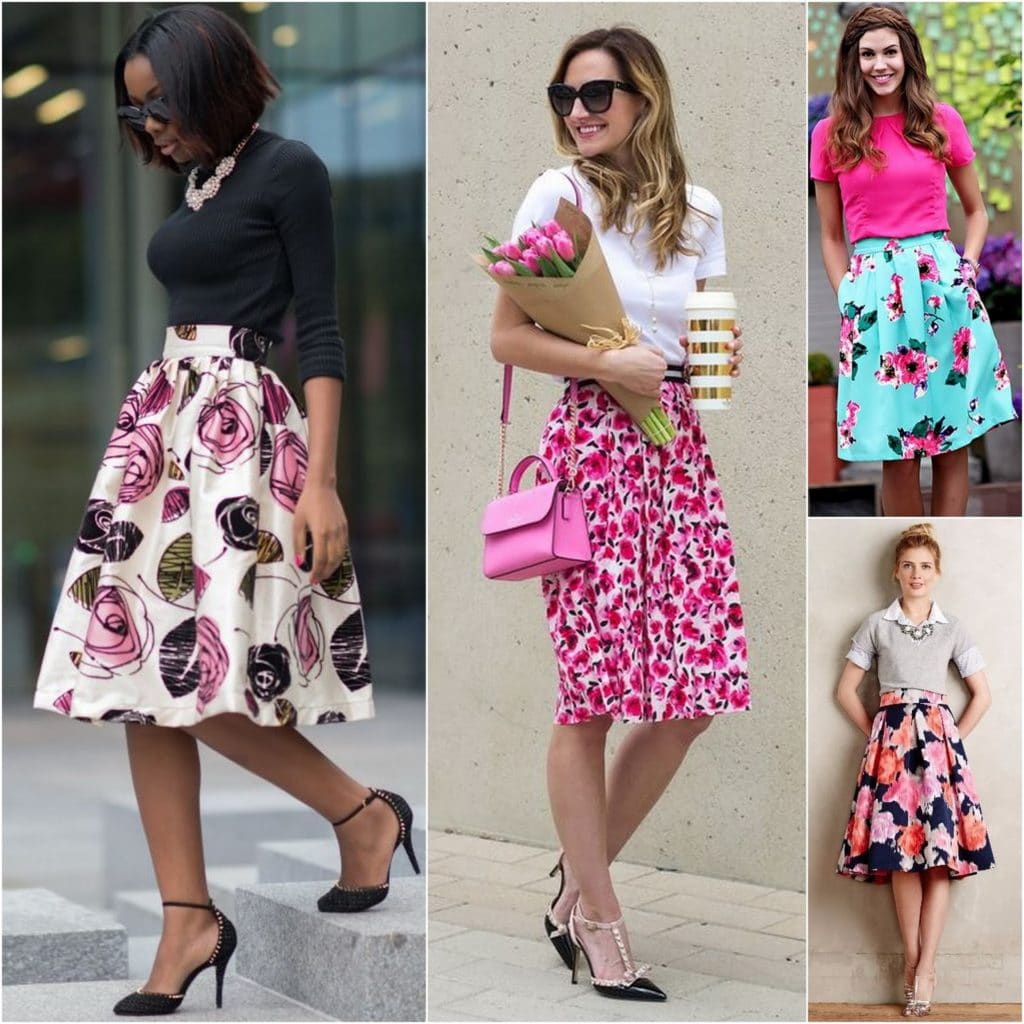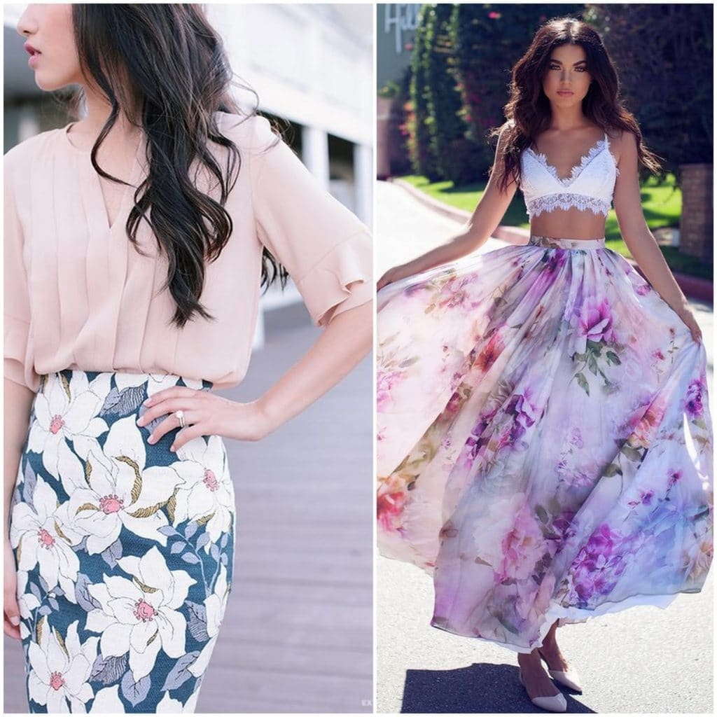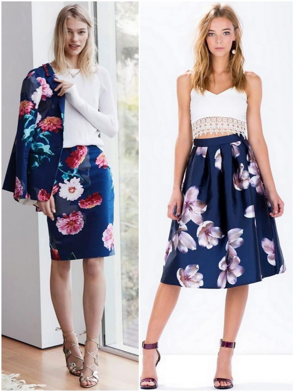 Skirt in flower one of the most relevant summer trends. There is not a single fashionista who remains indifferent to such a style. There are many designs of skirts that perfectly emphasize your sophistication and femininity. Skirt with a floral pattern, goes well with blouses, t-shirts and tops.