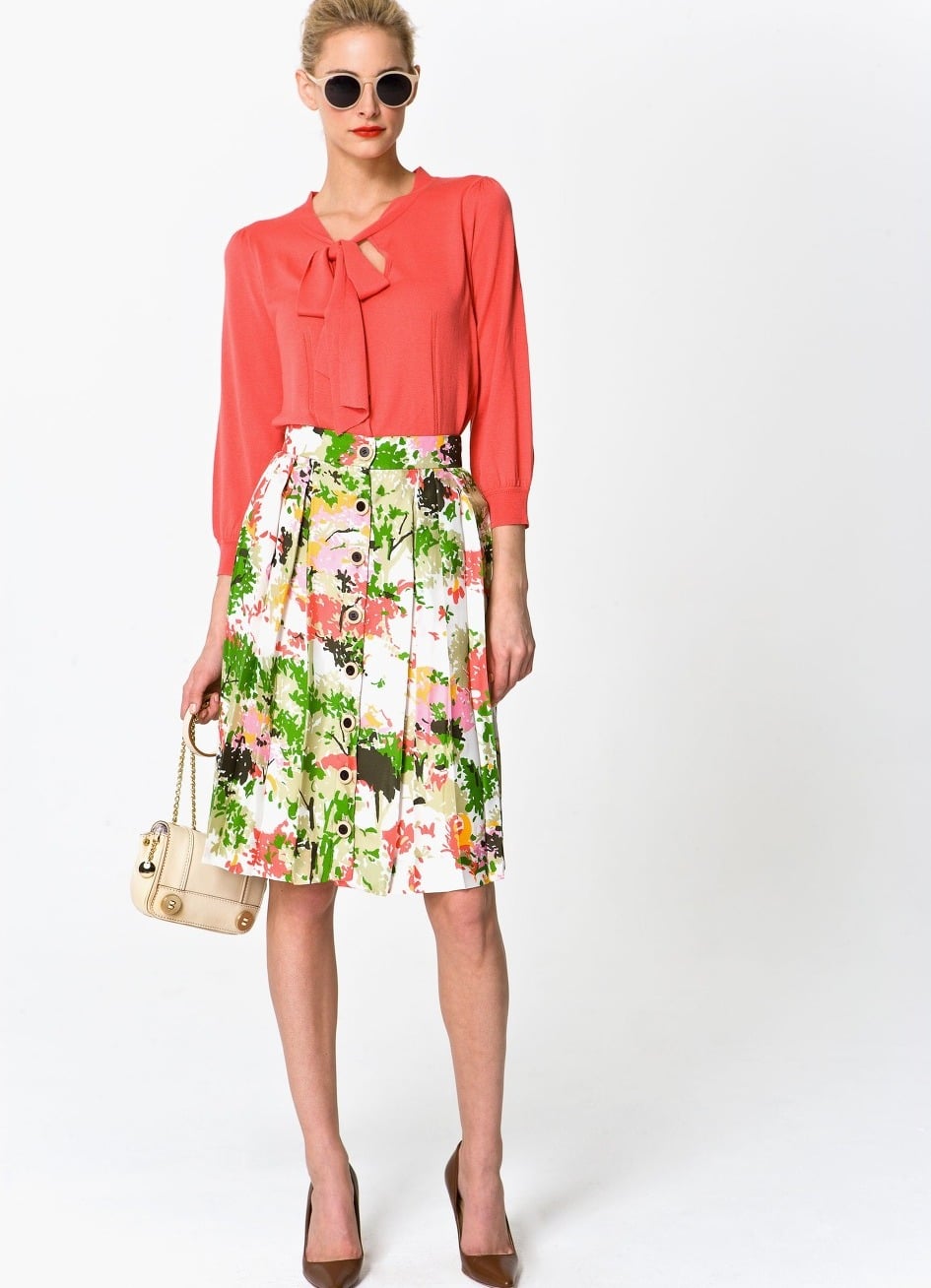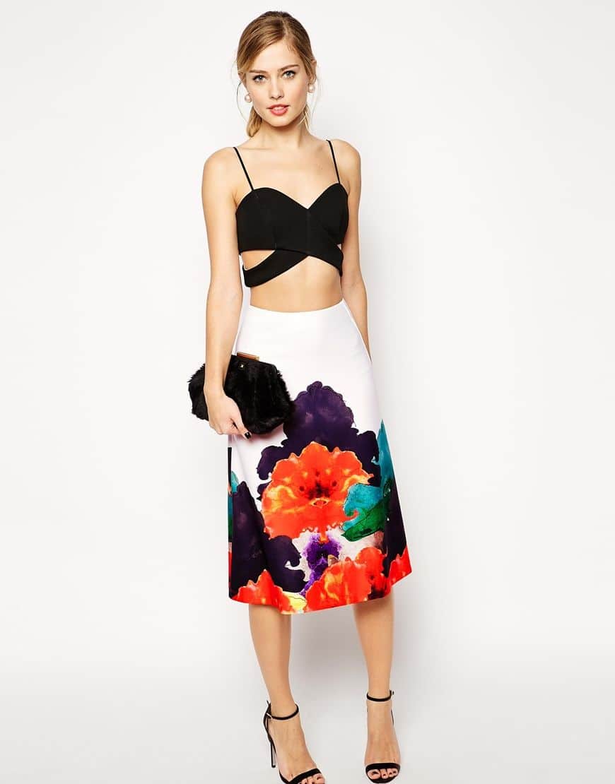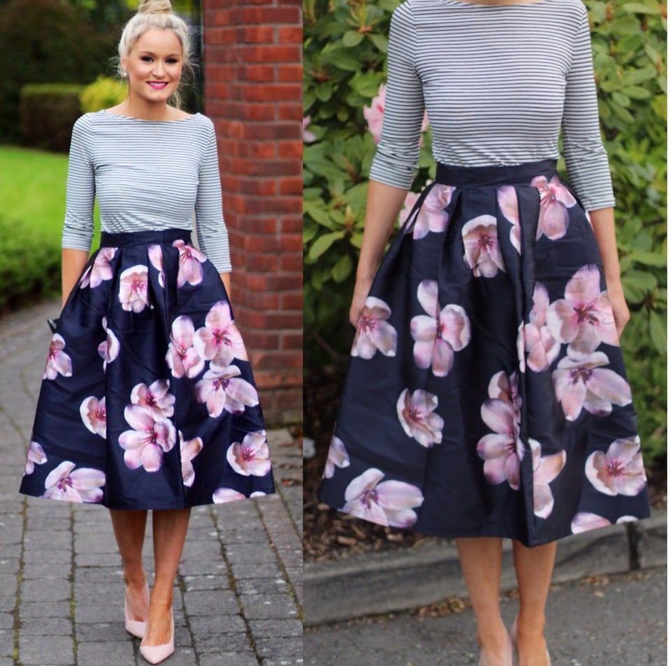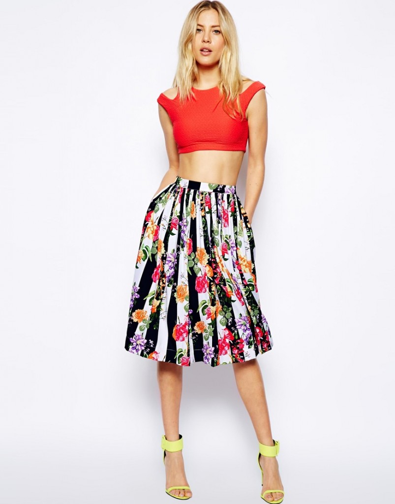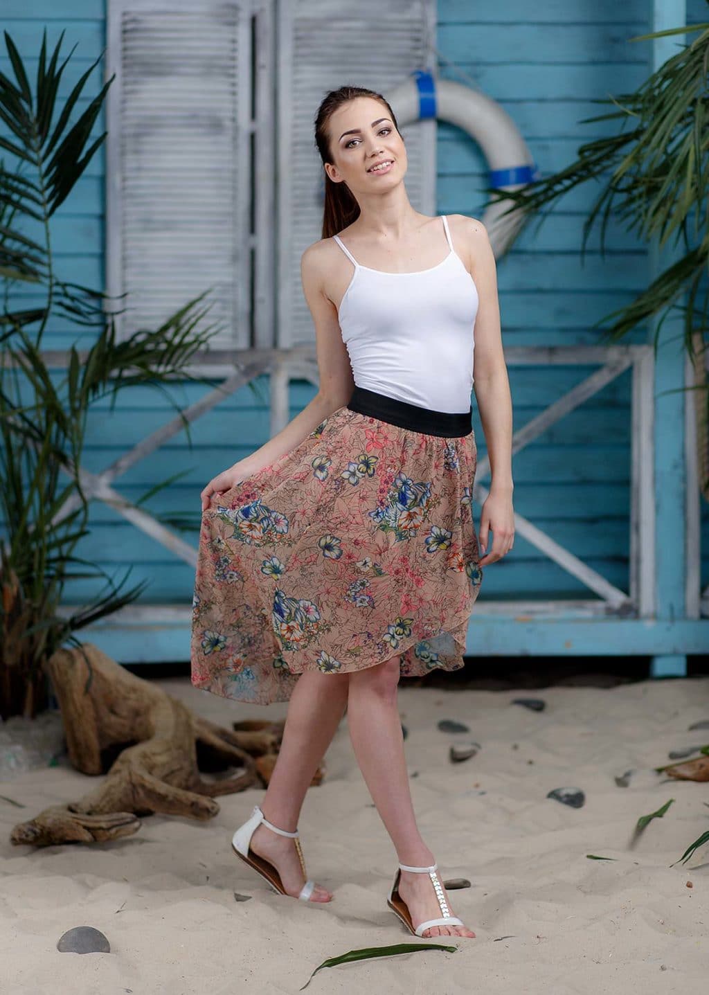 Skirt in flower one of the most relevant summer trends. There is not a single fashionista who remains indifferent to such a style. There are many designs of skirts that perfectly emphasize your sophistication and femininity. Skirt with a floral pattern, goes well with blouses, t-shirts and tops.