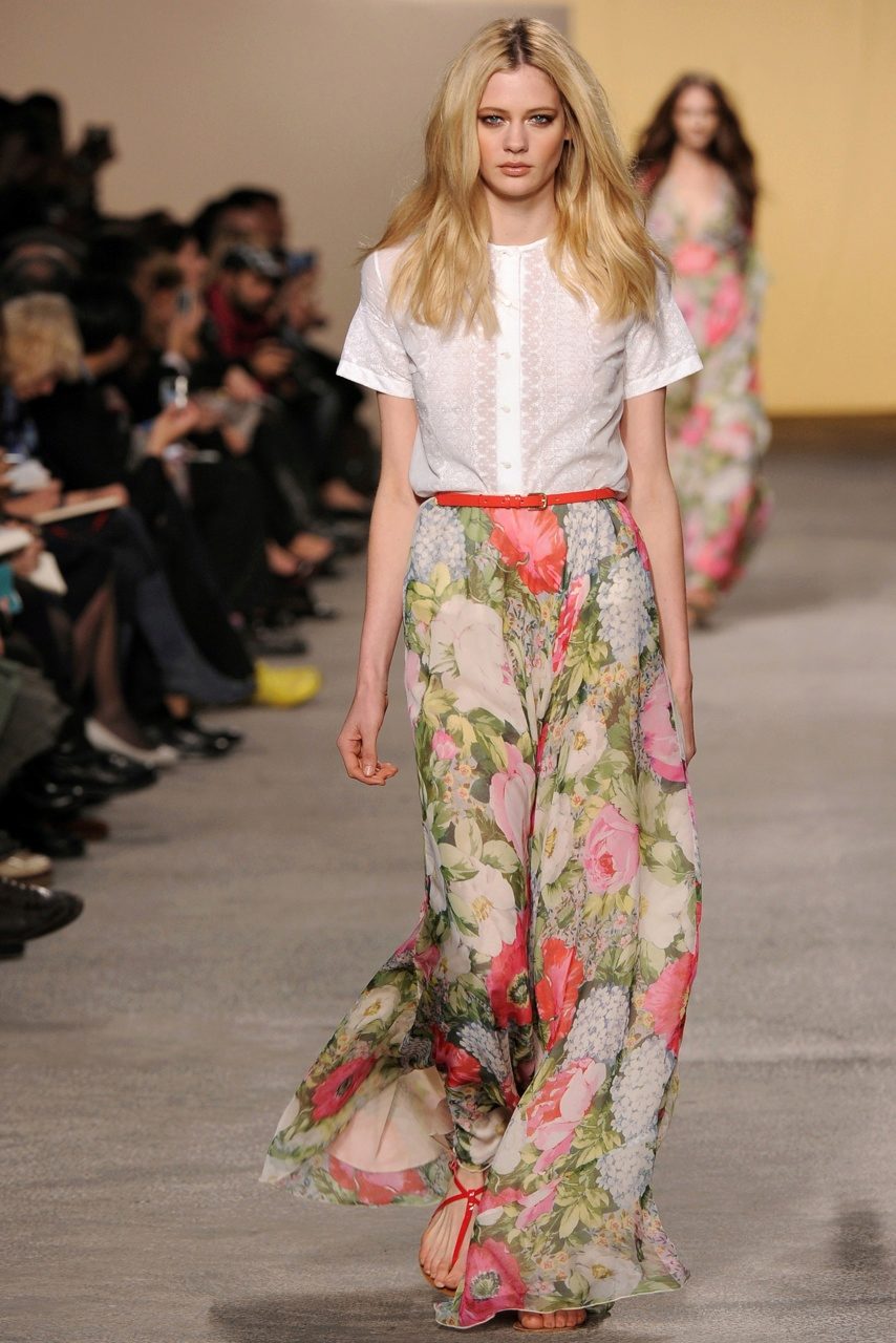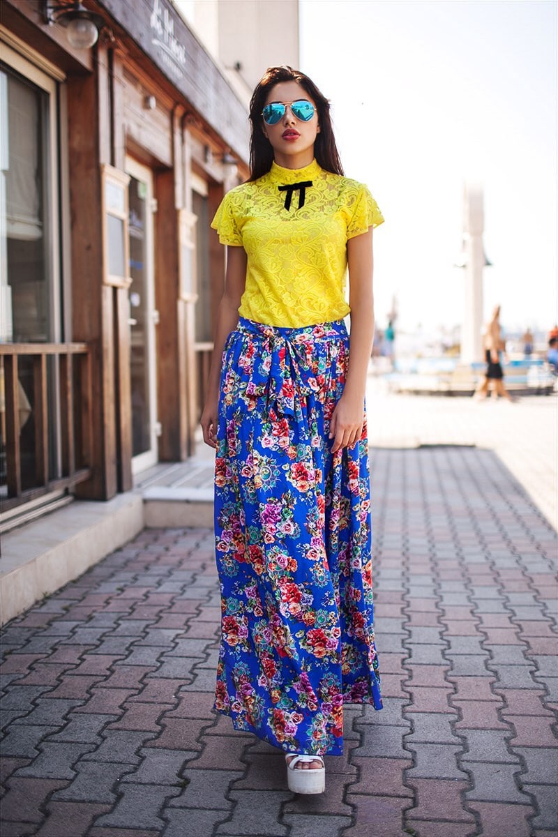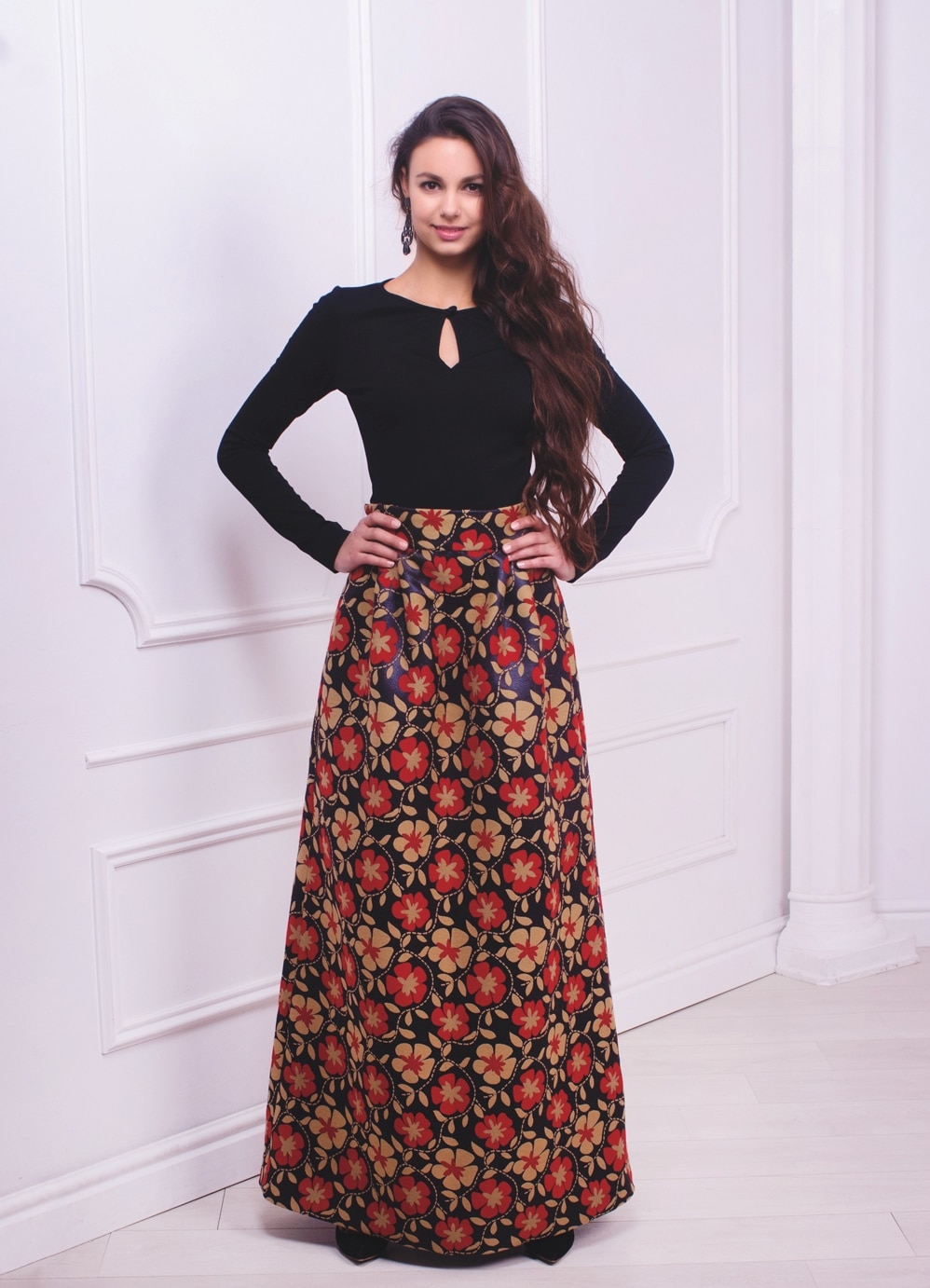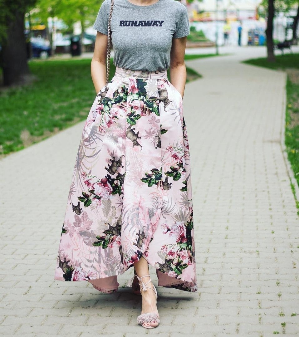 Maxi skirt is always relevant. Combining floral motifs, we will make the image sensual and elegant. This style is perfect for everyday as well as for festive attire.