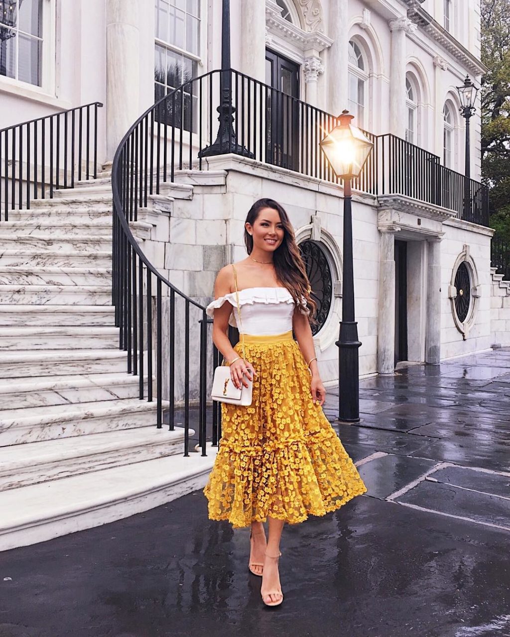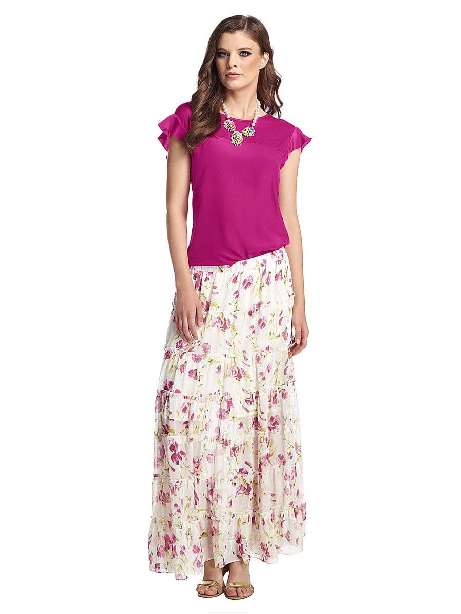Summer tops and pastel shirts are a great choice for a light, light skirt with a floral pattern.