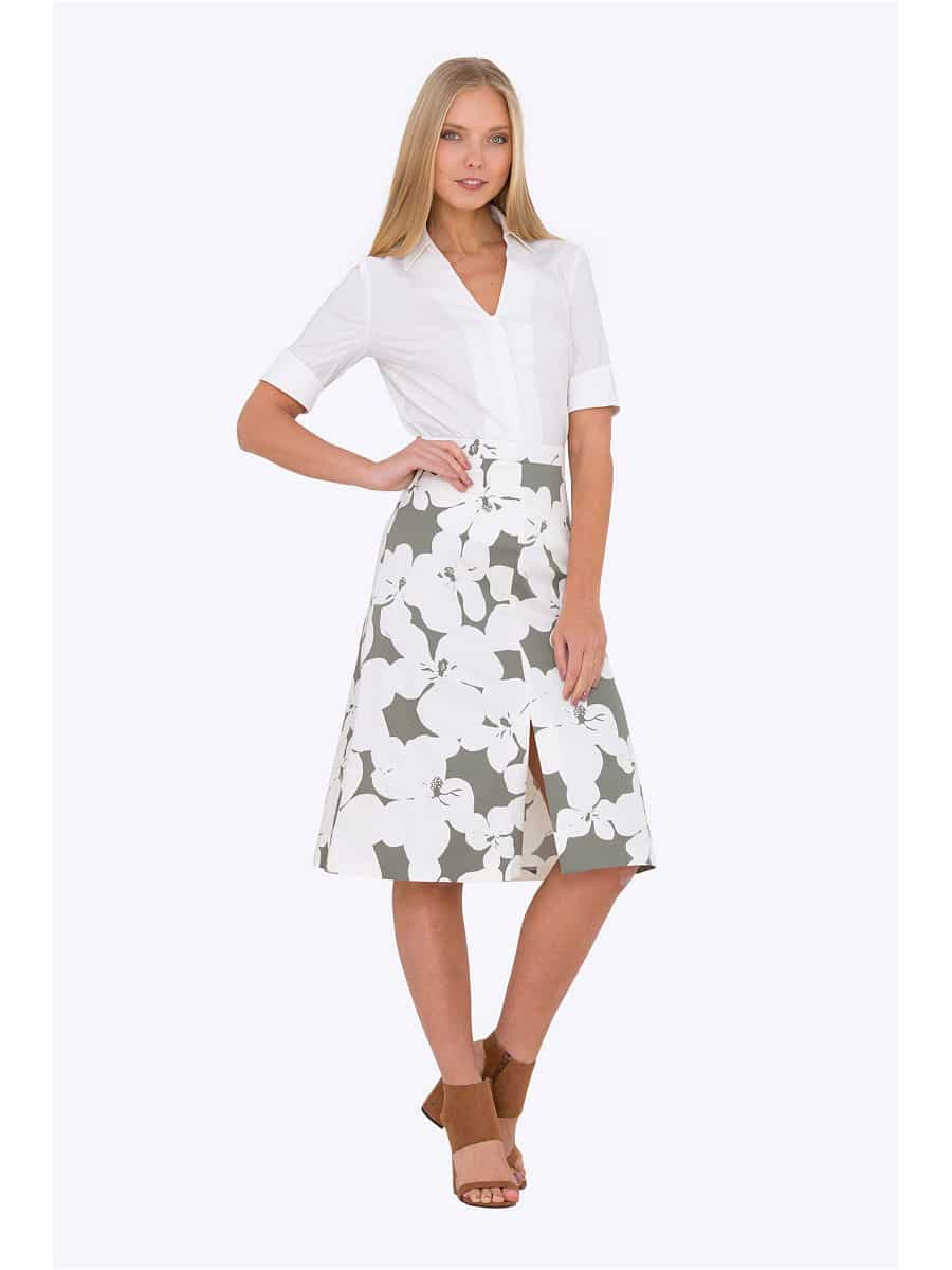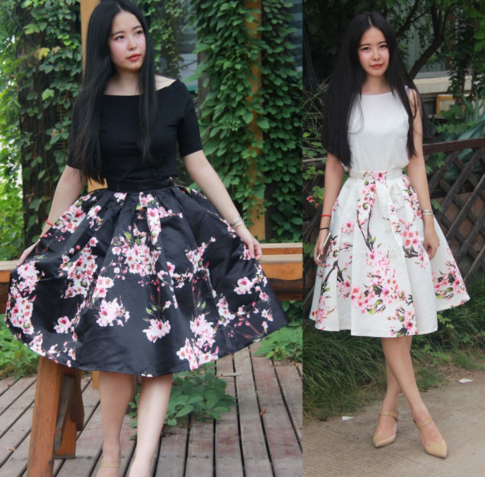 Mid-length skirts have long won the hearts of fashionistas. Bright colors with a floral pattern make this design suitable for a variety of styles.