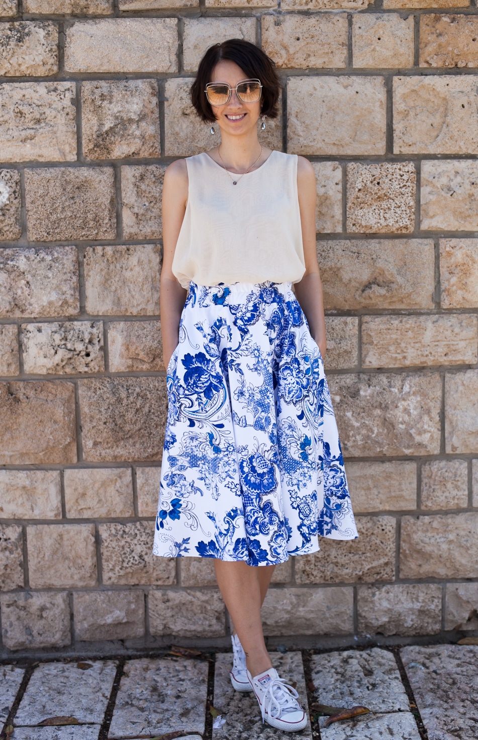 Experiment with the color and size of the pattern, as well as the background of the skirt itself.