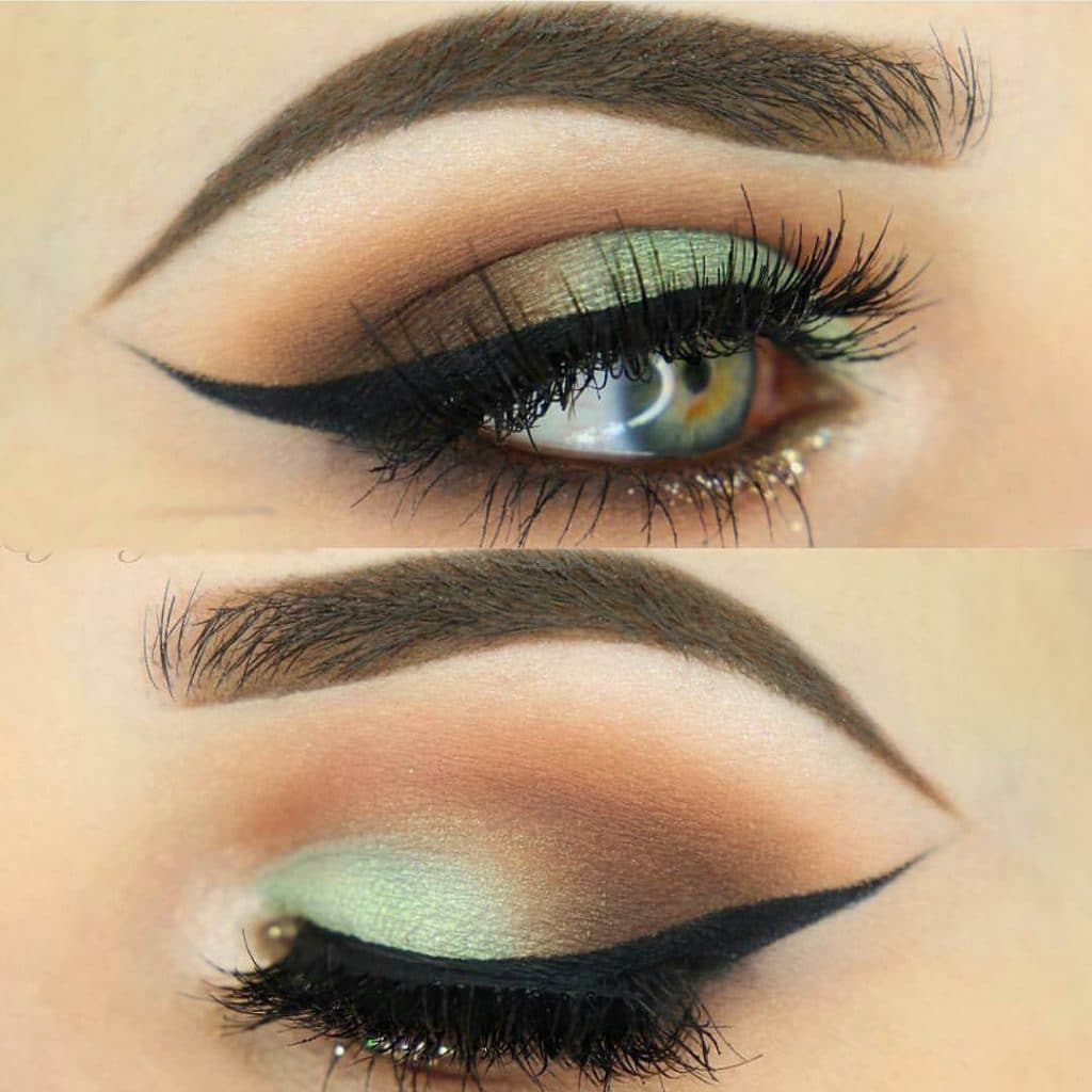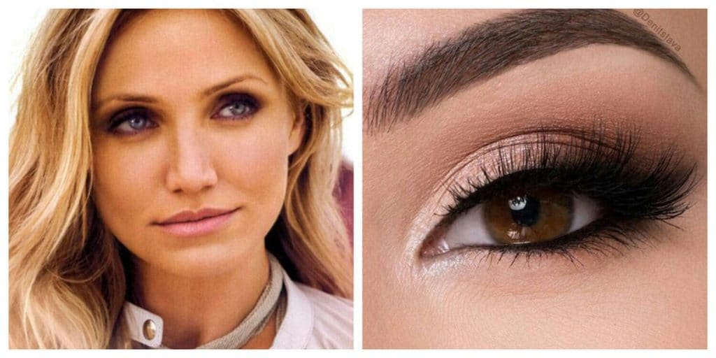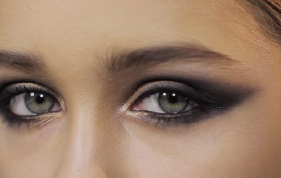 A fairly popular solution is to choose several shades of brown. From the light, which is applied closer to the corner of the eye, to the dark, which lies on the movable eyelid and with a pencil and shading, the corner is darkened.