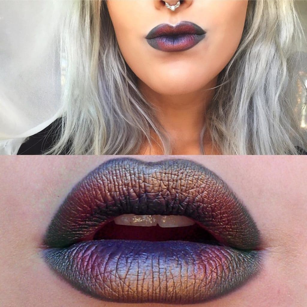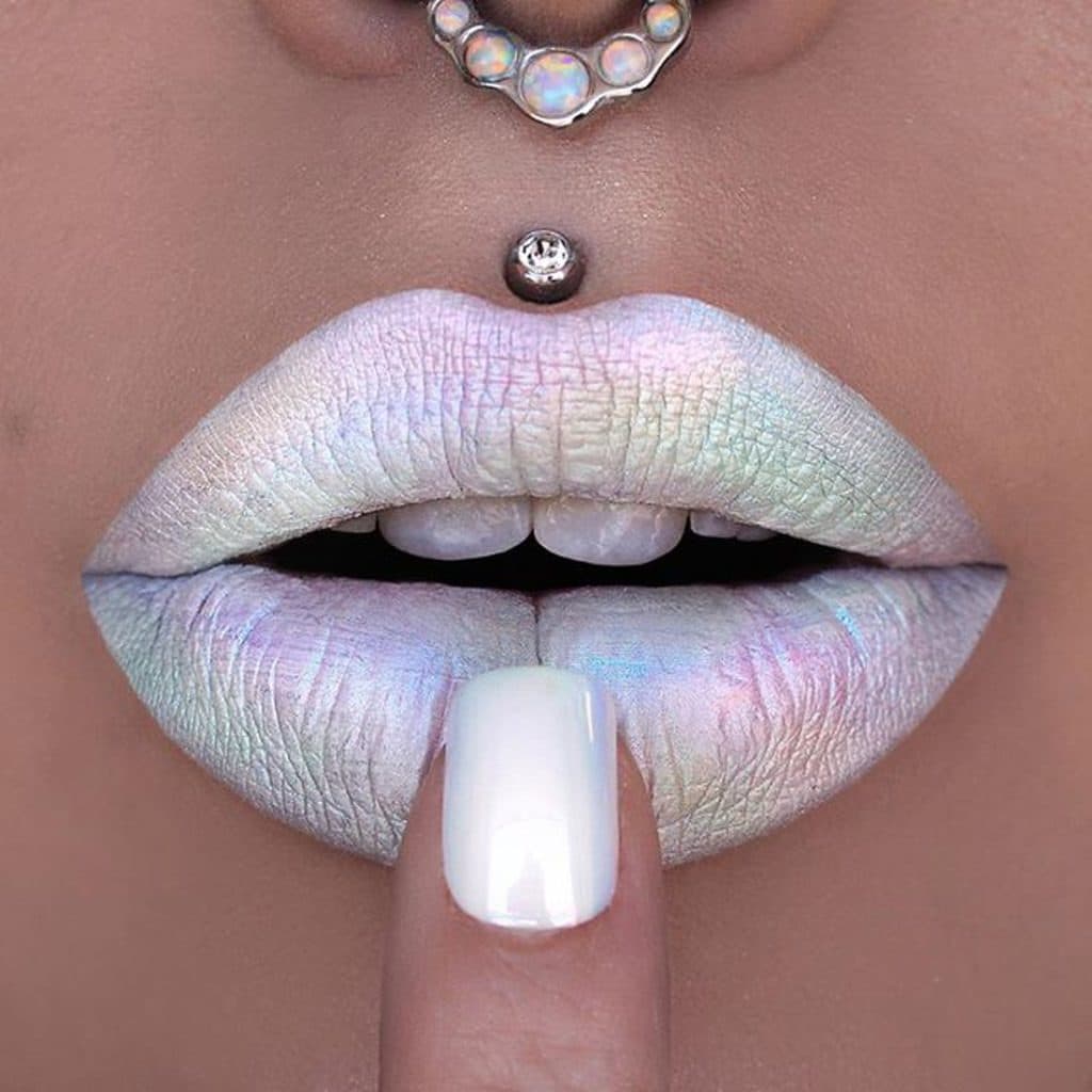 Holographic lipstick has a specific overflow, similar to "gasoline" stains. If in winter 2024, lipstick with glitter was considered a stylish make-up, then in the spring of 2024 she faded into the background. Holograms come in fashion with confident steps and have several types of classification. One view is more saturated and has a futuristic texture.