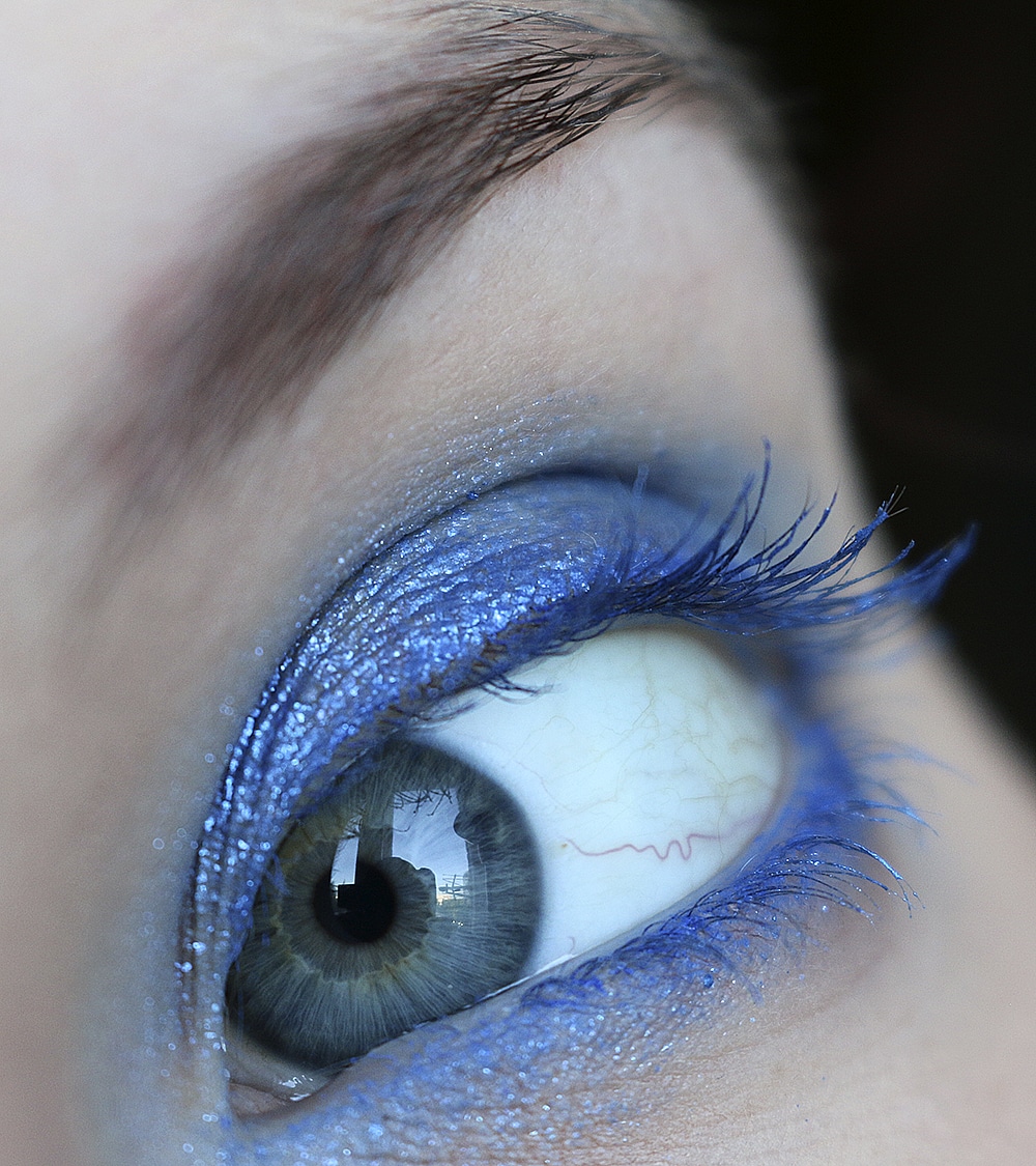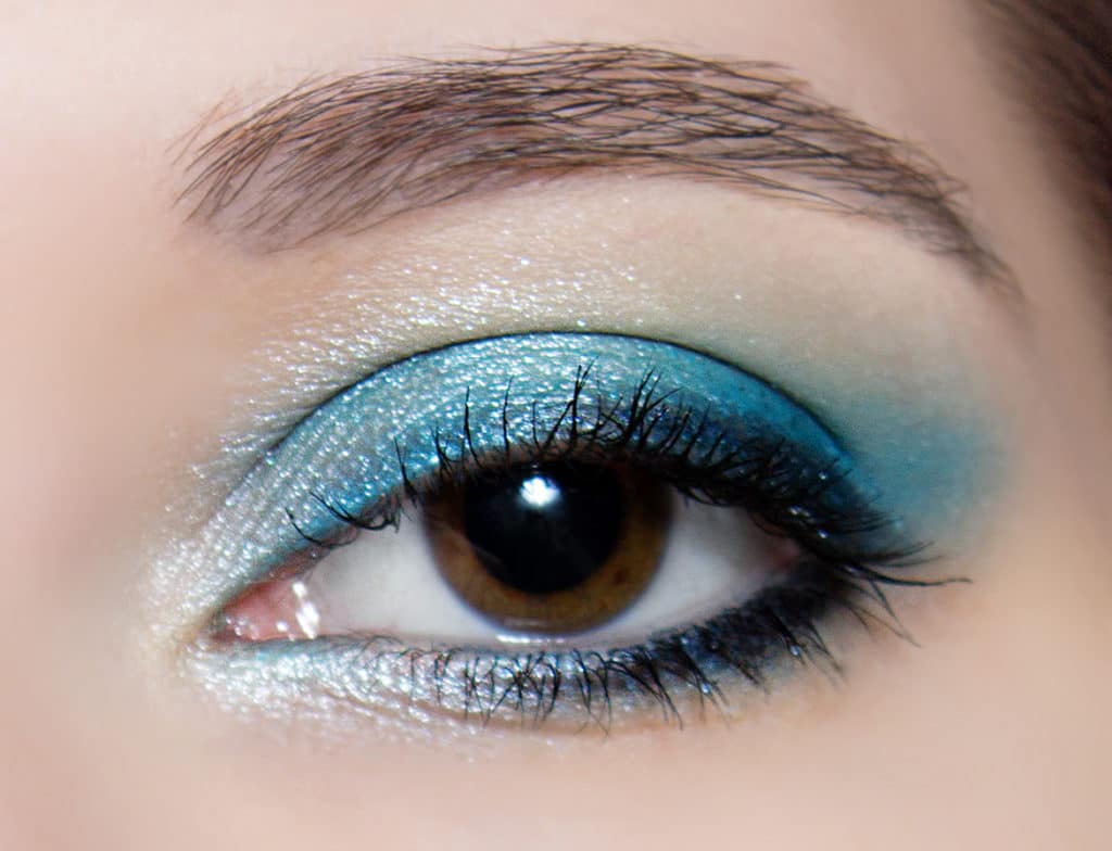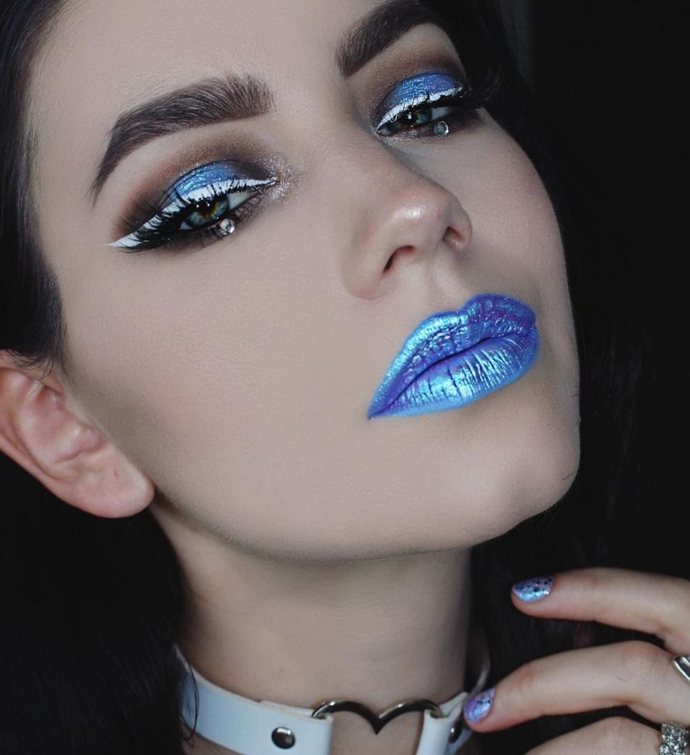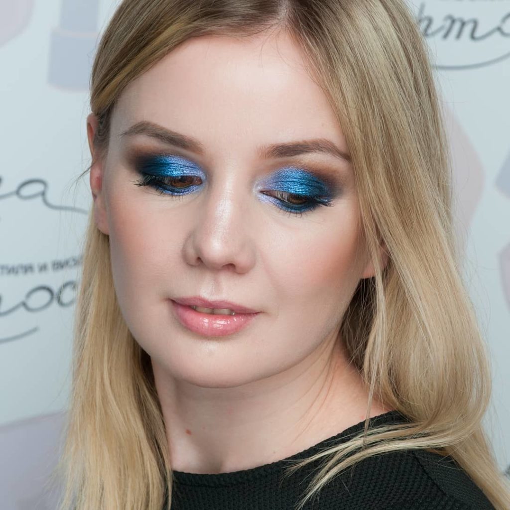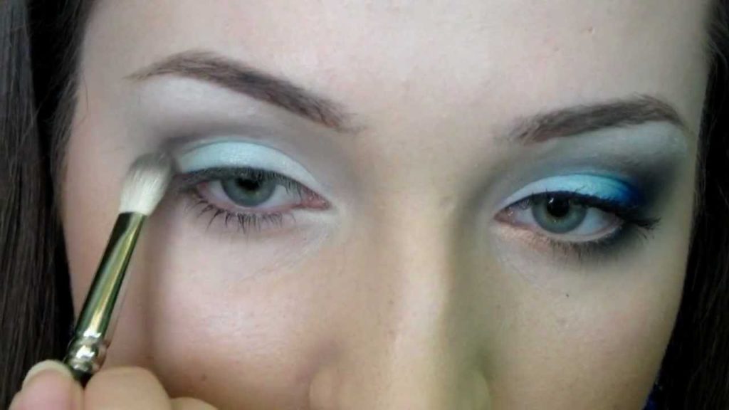You can apply such shadows to the entire moving eyelid, and darken the corner with black shadows. Shades of blue are very diverse. These are arctic, heavenly, powdery blue, icing blue and tiffany. You can also highlight your eyes by tinting not only the upper eyelid, but also the lower one. And also use the technique "Northern Lights", when two different tones of blue fuse together.