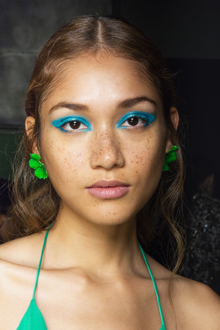 Another trendy color for spring 2024 are blue shades. Such shadows personify the sky blue sky and help to refresh the face. Blue color is very harmoniously combined with black arrows, as well as with non-standard color brasmatics, blue or green.