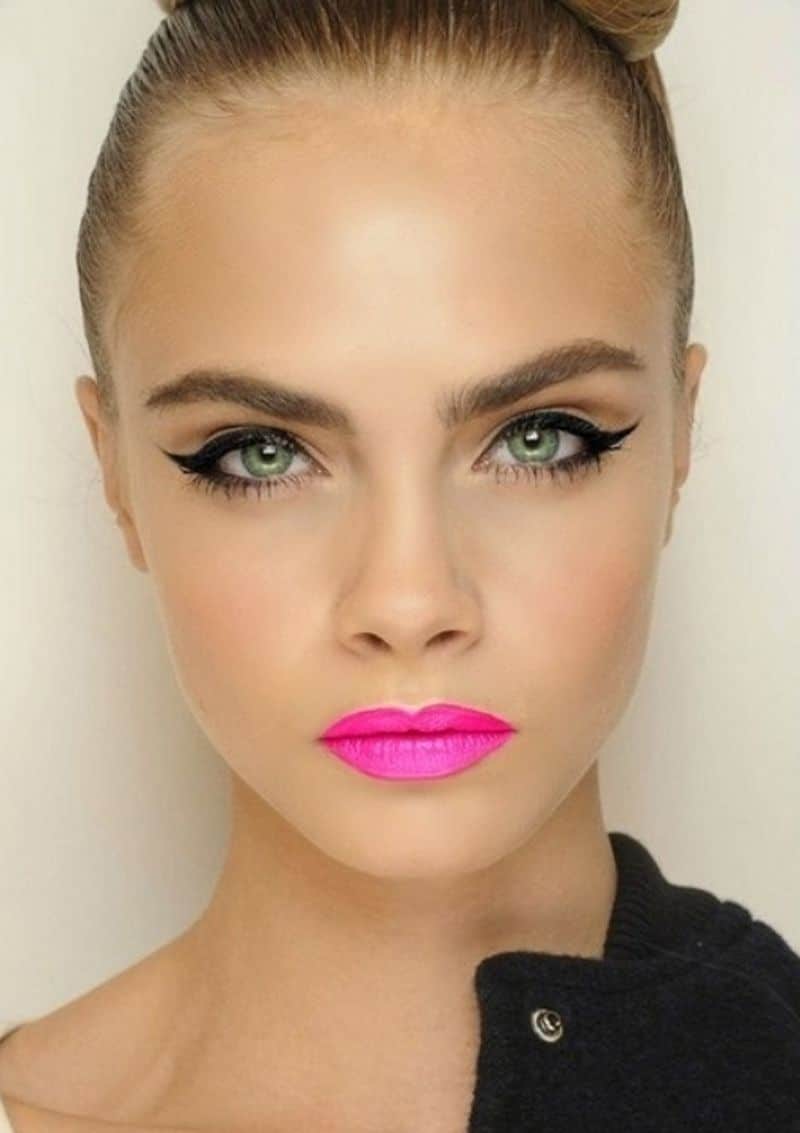 Brunettes are well suited for fuchsia lipstick, chocolate, burgundy, and also dark red. Dark red lipstick and black hair will create a beautiful contrast, and burgundy will make lips sensual.