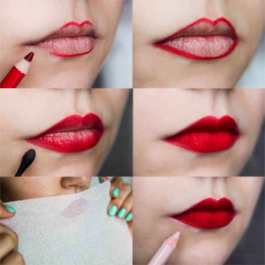 - If you want to make your lips visually smaller, forget about the pencil. Choose a matte lipstick, it does not have a shine that visually will not increase lips.