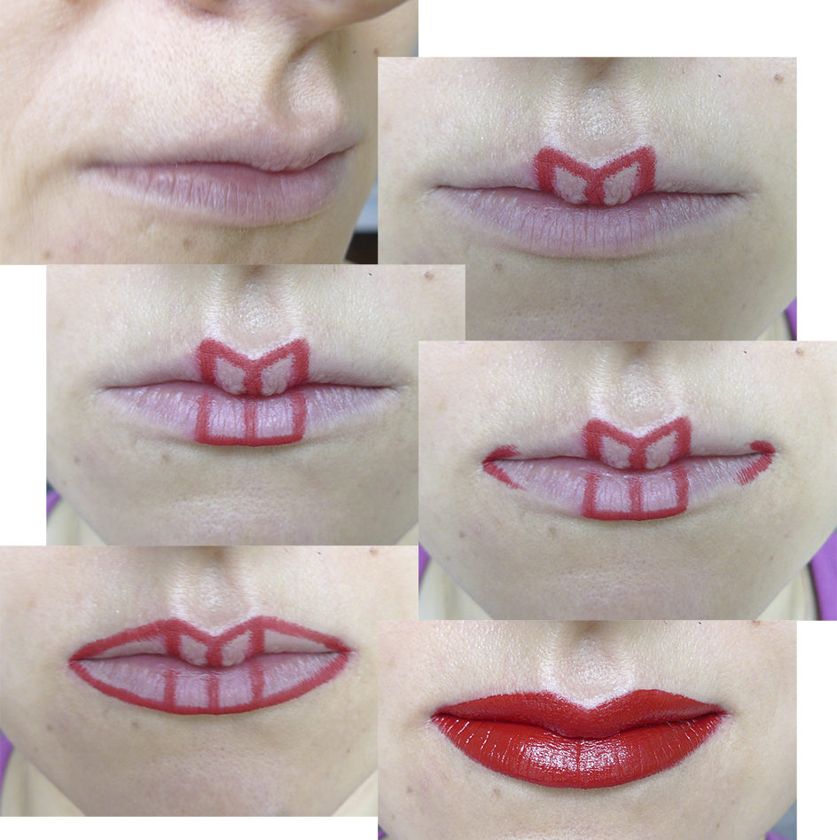 - We begin to draw a contour from the central part of the lips.