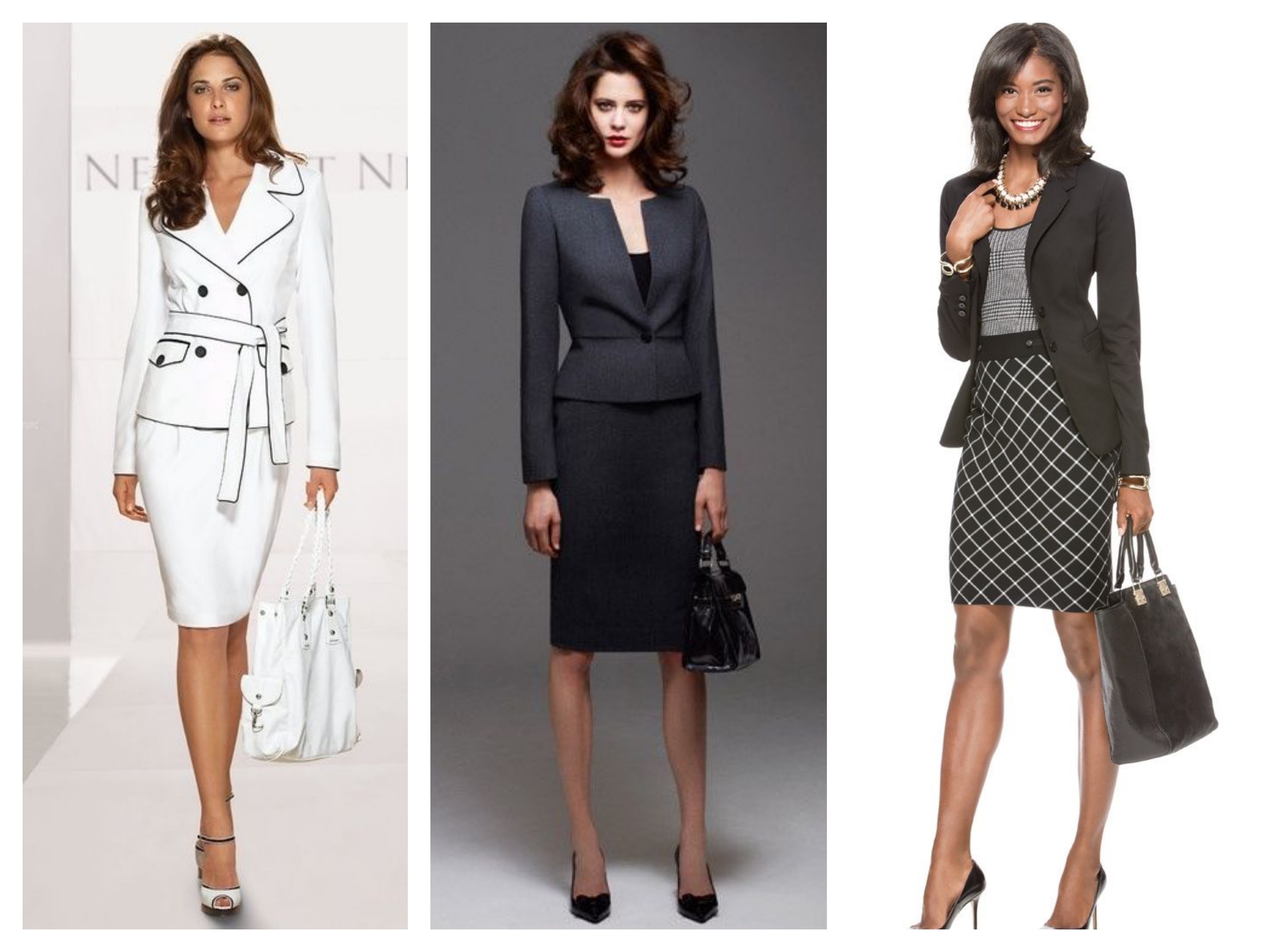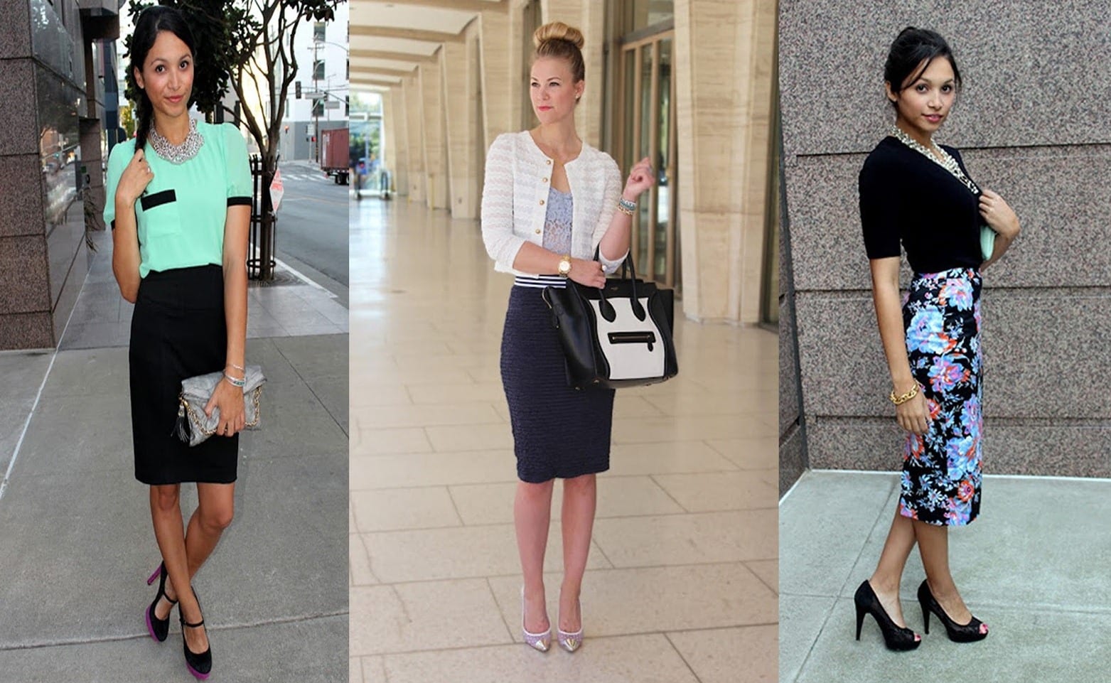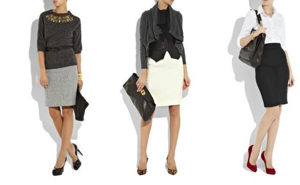 The combination of a pencil skirt and blouses of different colors will also look great. A fitted jacket and stilettos will complement this look.