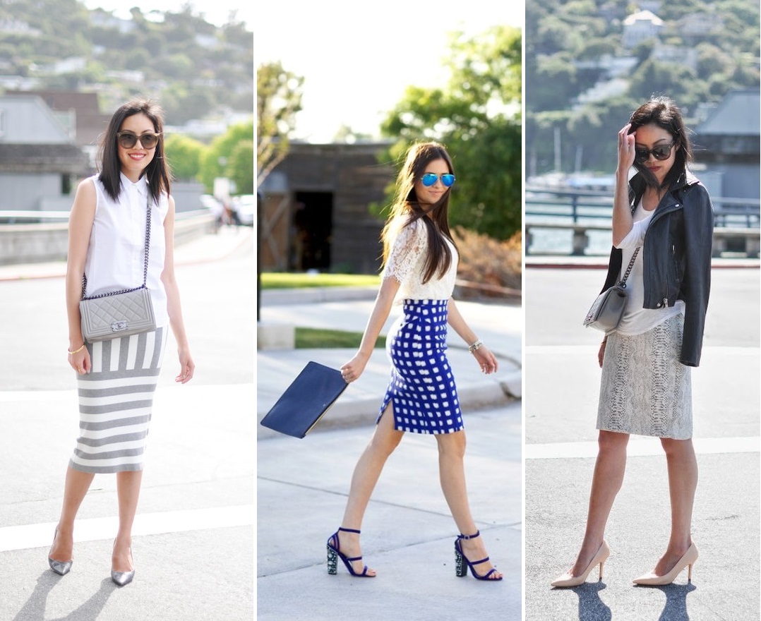 Geometric patterns look great in the design of a pencil skirt.
