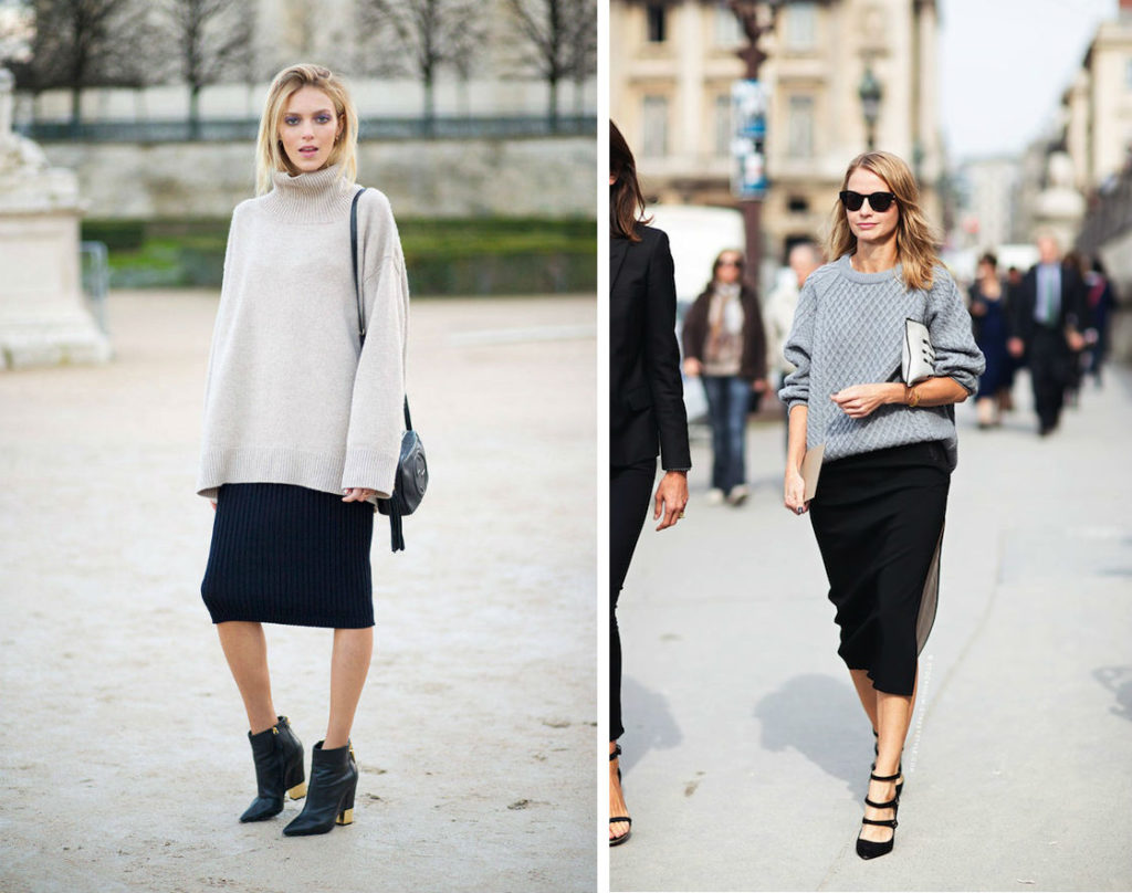 Such a universal design, it perfectly emphasizes your figure and hides the flaws. There are a lot of variations of the pencil skirt model, each will choose its own style.