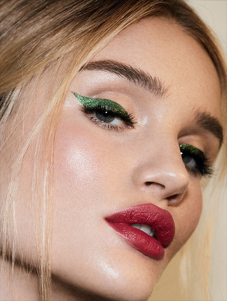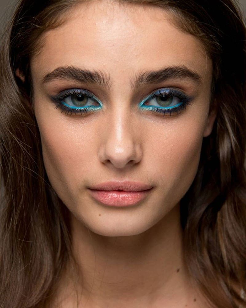 Green shadows are ideal for green and blue eyes, helping to reveal their depth. They blend well with blue, black, and green eyeliner. The use of complementary color is also allowed. It can be yellow or purple, other fashion colors of the summer of 2024.