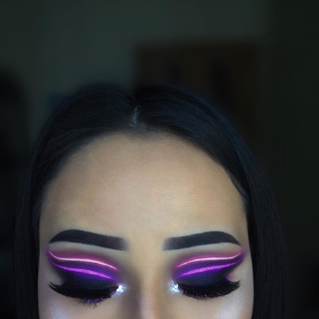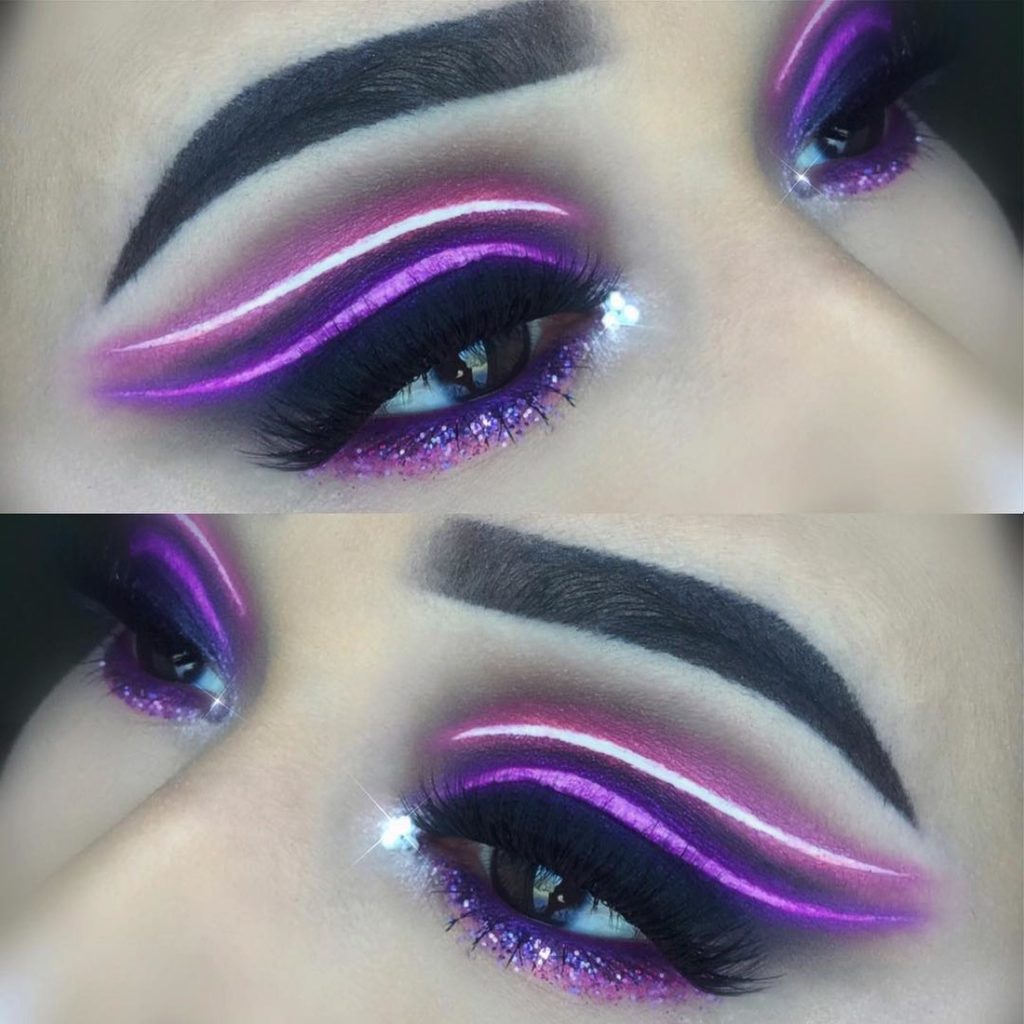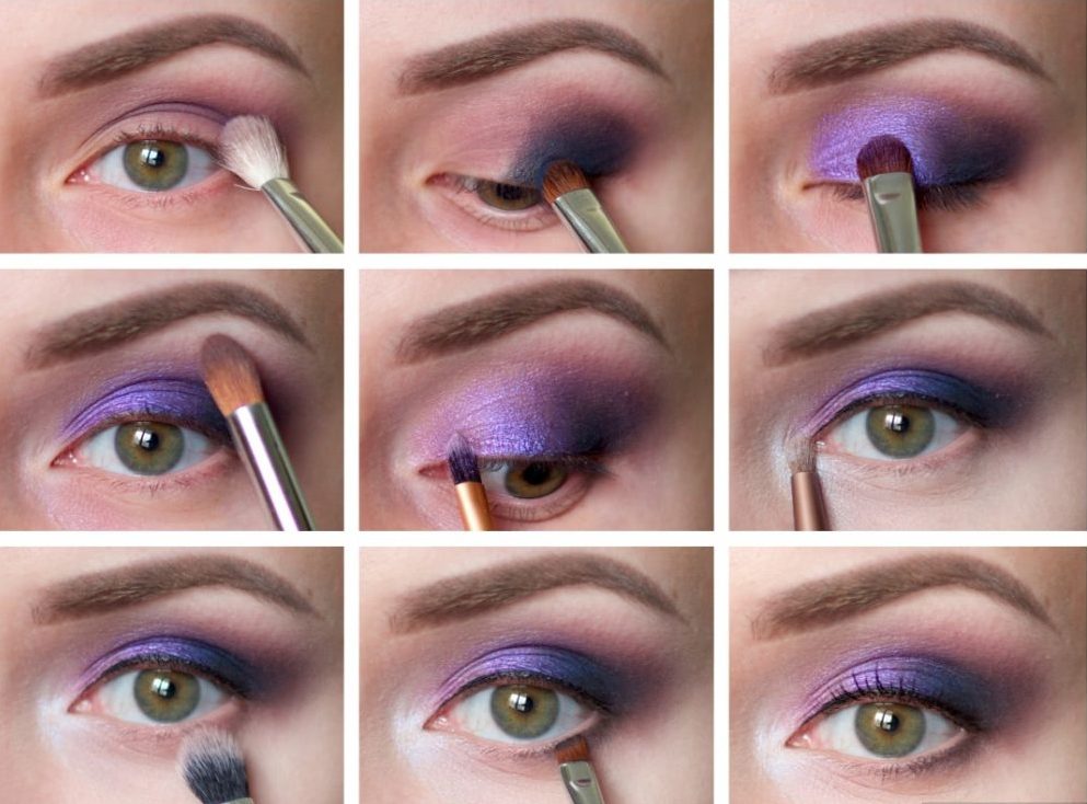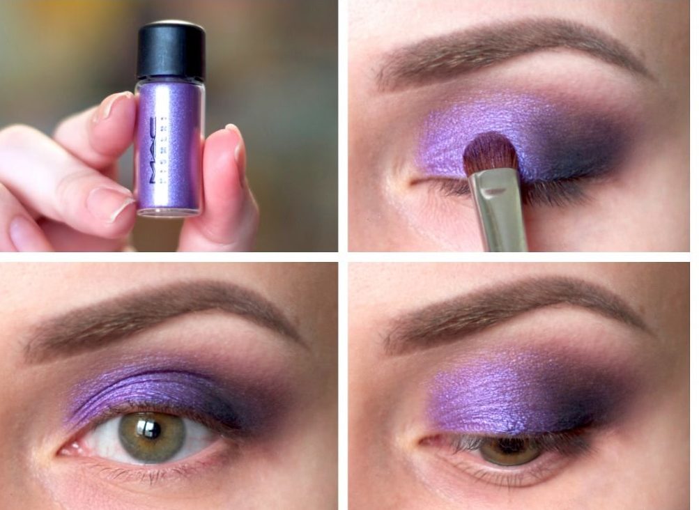 A good option would be to highlight the eyelid in two colors: in light and purple. This will help to create a beautiful play of color, which will make your makeup even more expressive.