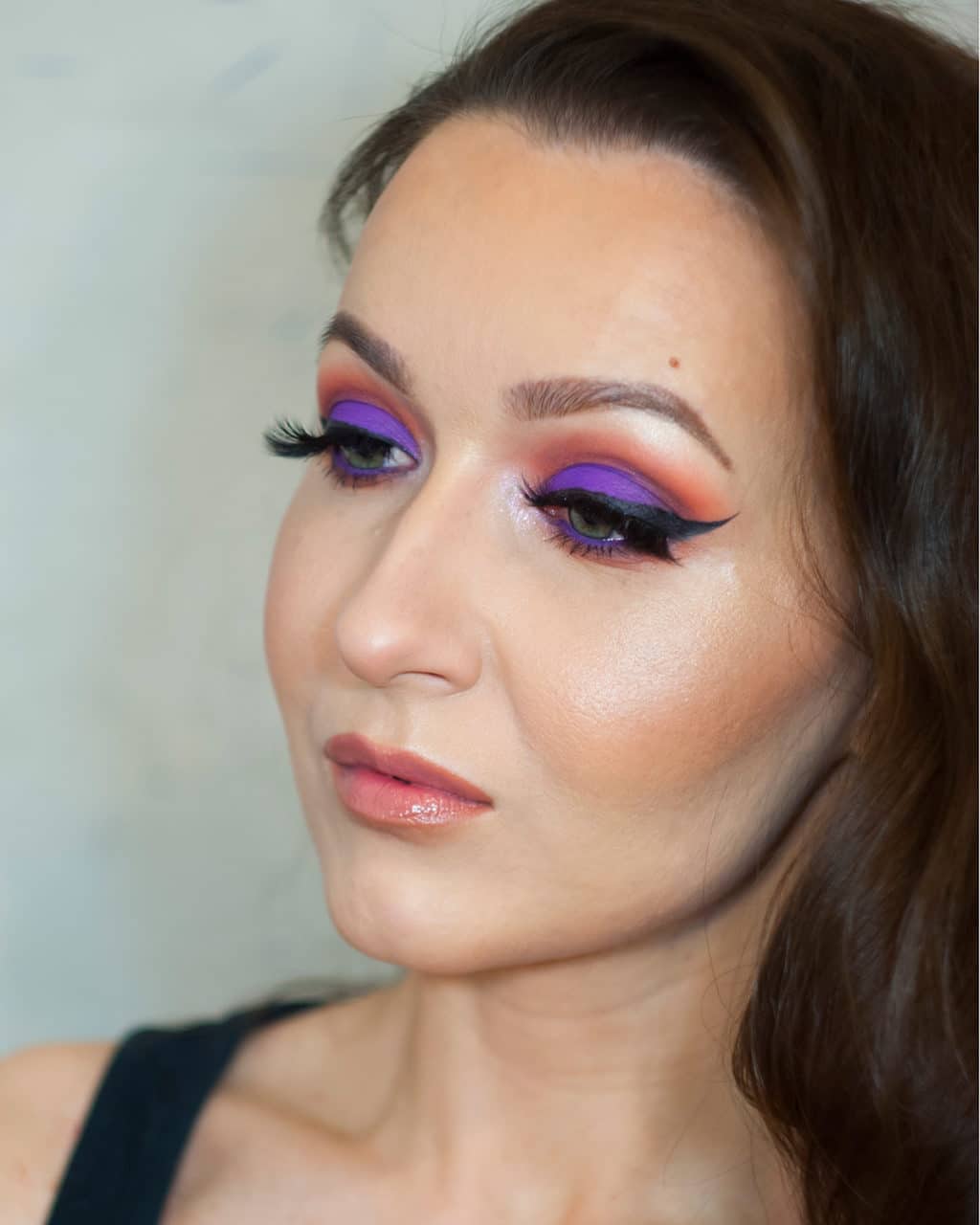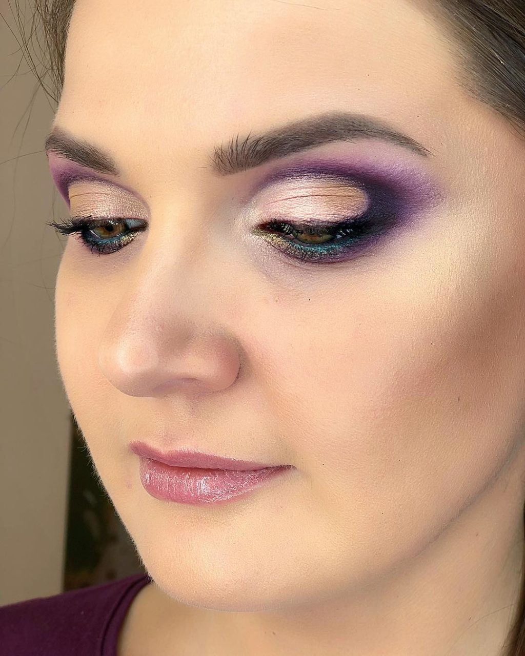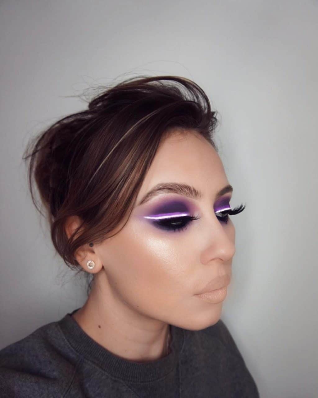 A good option would be to highlight the eyelid in two colors: in light and purple. This will help to create a beautiful play of color, which will make your makeup even more expressive.