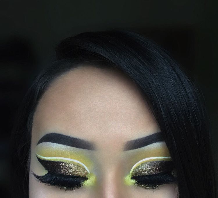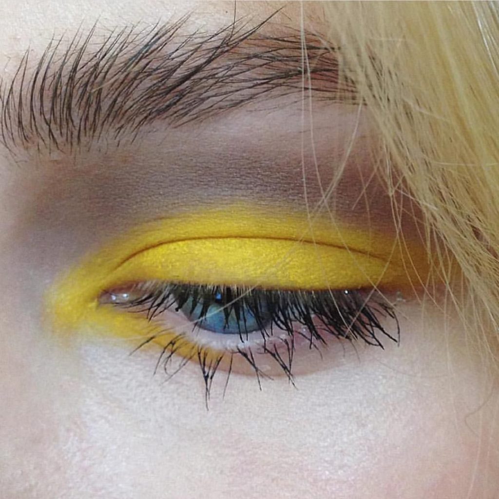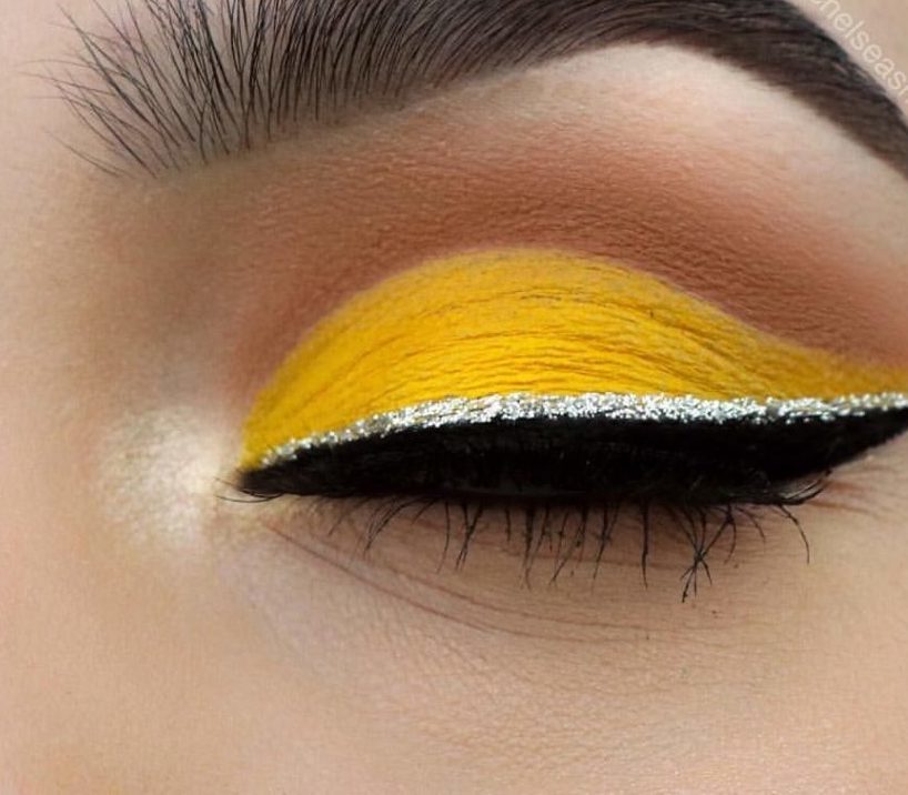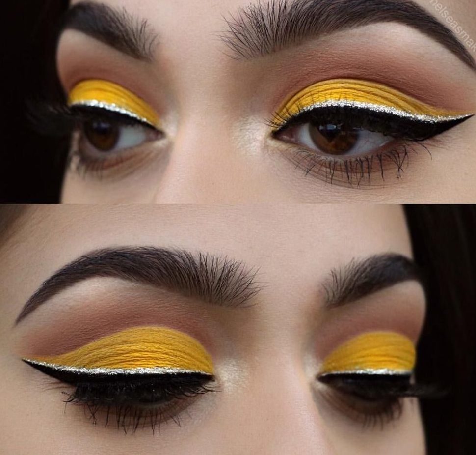 Do not be afraid to choose such a color as everyday makeup. After all, yellow goes well with black arrows, black-coal ink, which ultimately form a beautiful, sunny make-up.