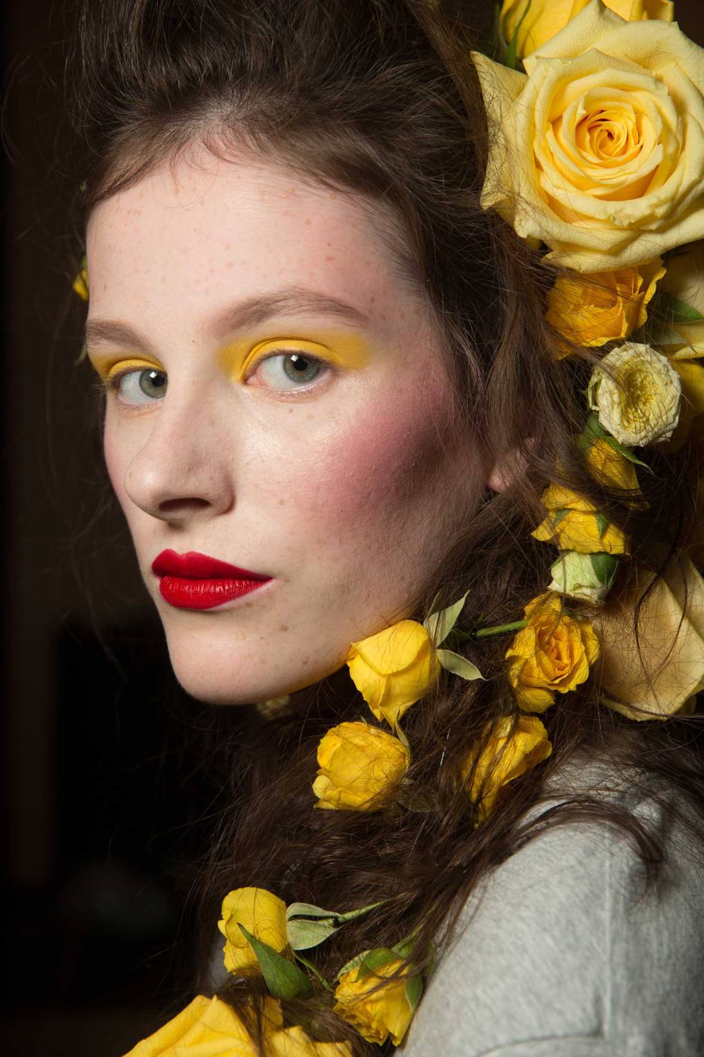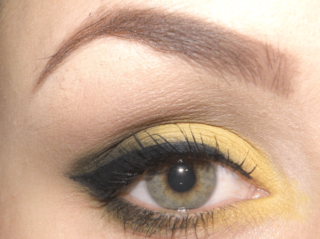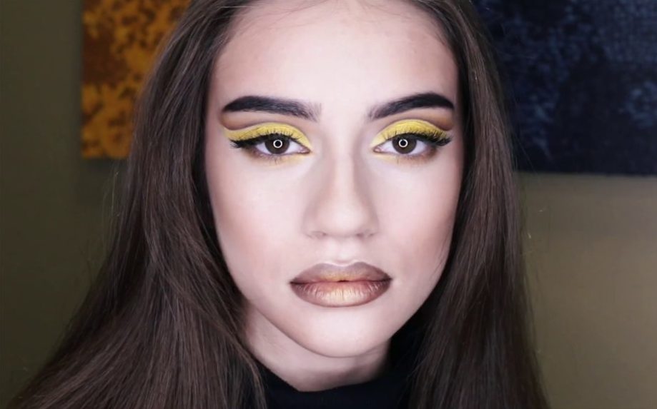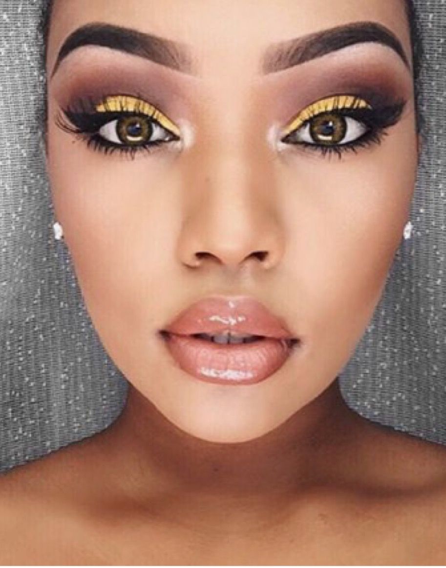 Do not be afraid to choose such a color as everyday makeup. After all, yellow goes well with black arrows, black-coal ink, which ultimately form a beautiful, sunny make-up.