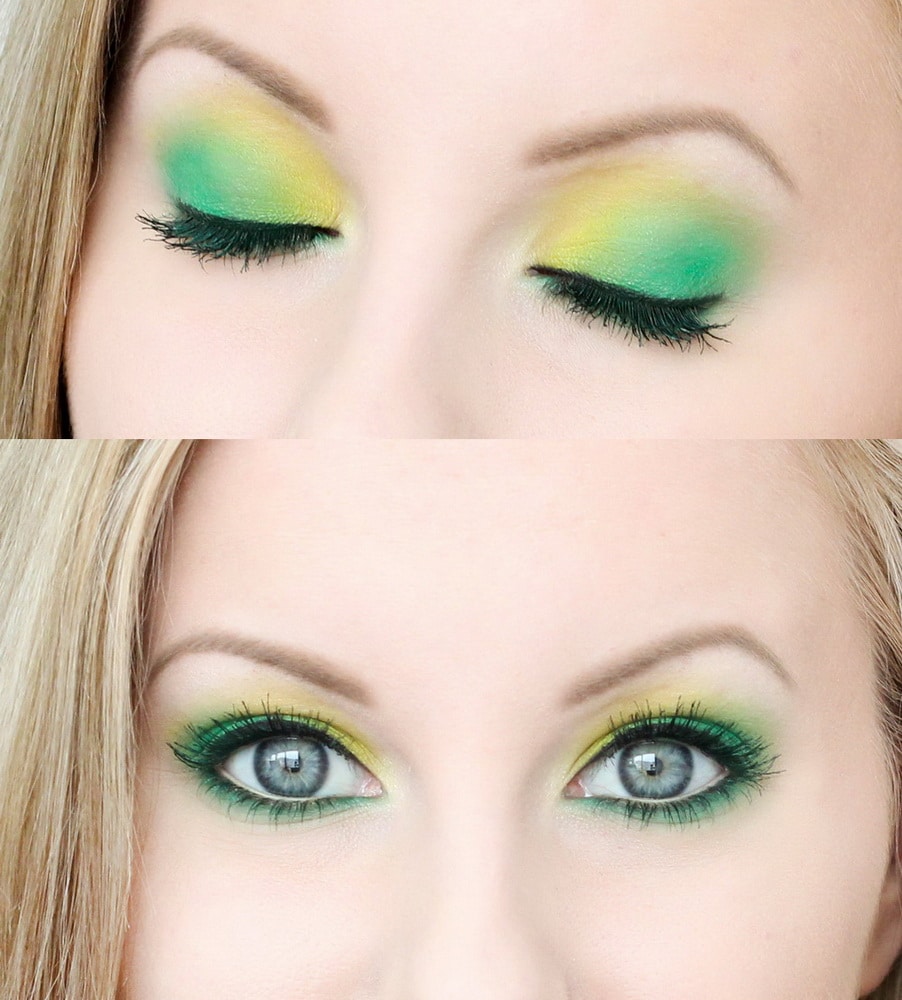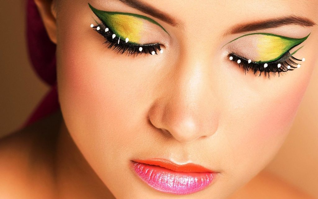 Such a make-up need not be considered very bright and vulgar. After all, the neat little arrows drawn in blue are perfect for working in the office.A small yellow and green lines, perfectly fit in a leisurely walk around the summer city.