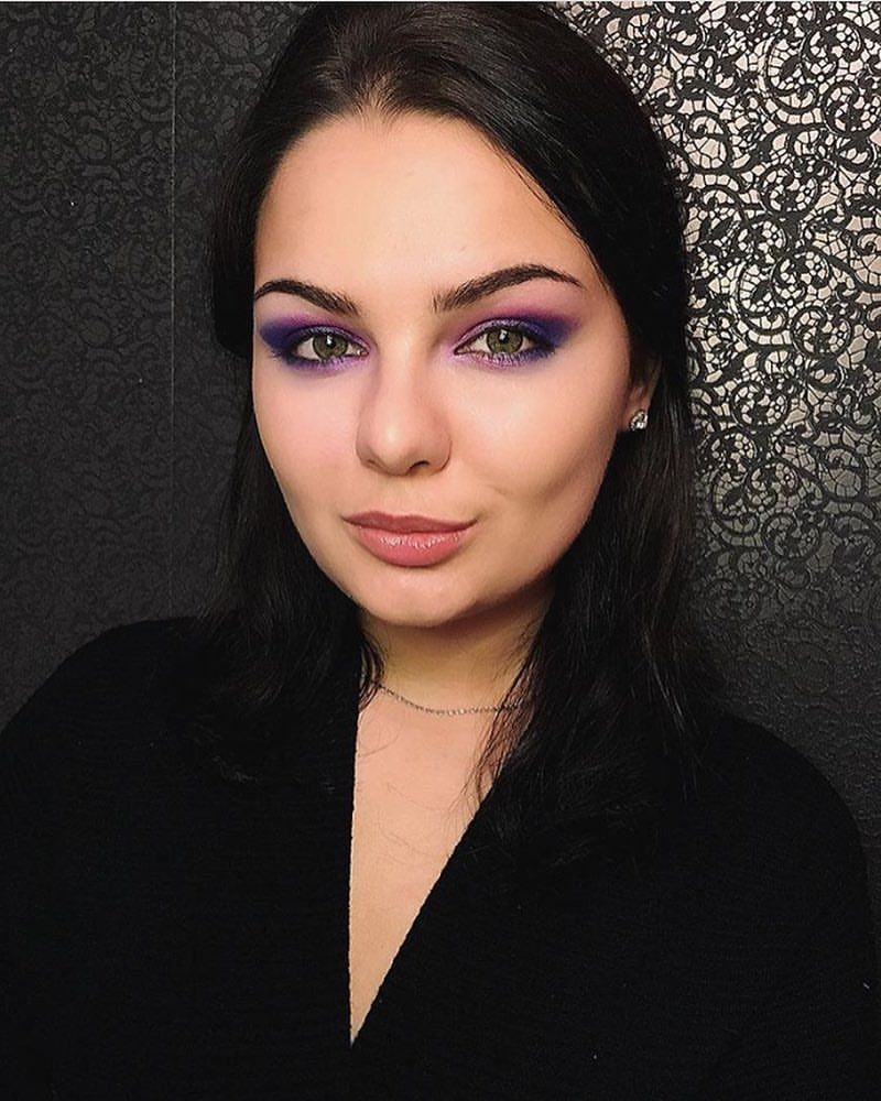 Violet shadows have a very bright and expressive texture.. Eye makeup made in this color is well suited for girls with brown, black, as well as green and blue eyes.