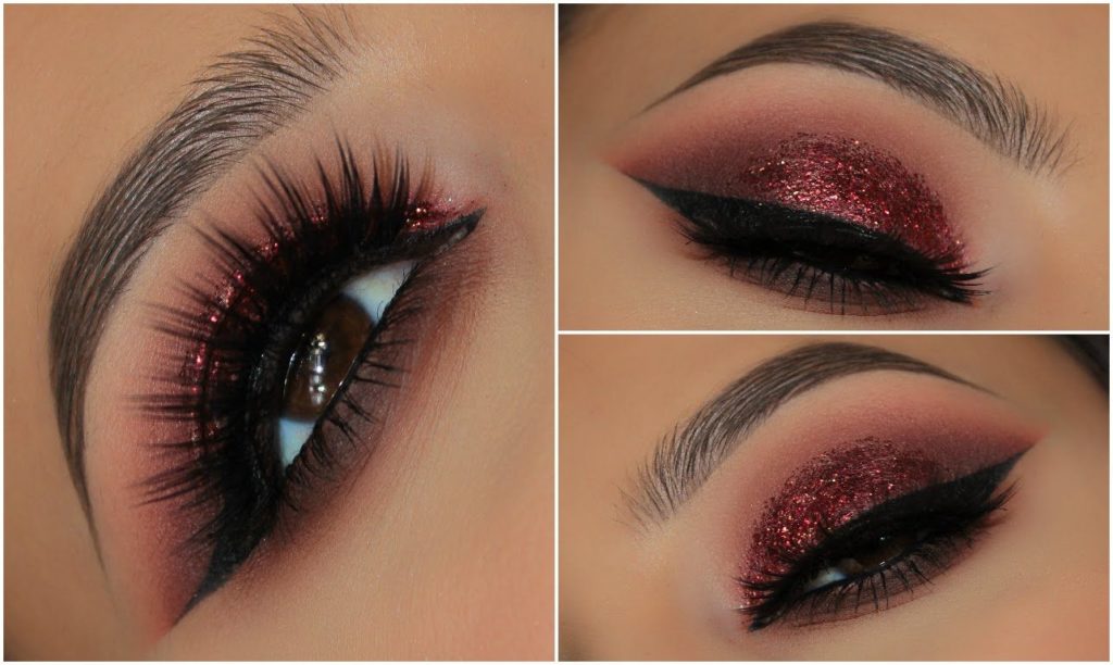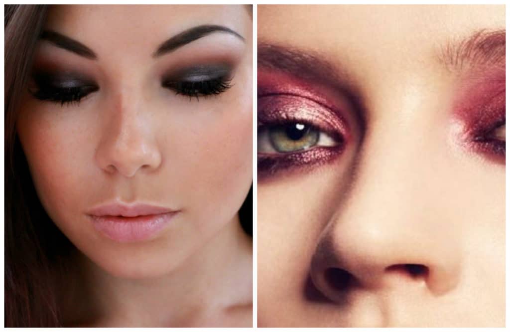 For red smoky eyes choose red shadows with sparkles, as well as matte. But to make their color beautiful and saturated, make-up artists recommend applying a little foundation on a clean eyelid, and then the shadows themselves. Otherwise, there is a risk that your red color will turn out dirty.
