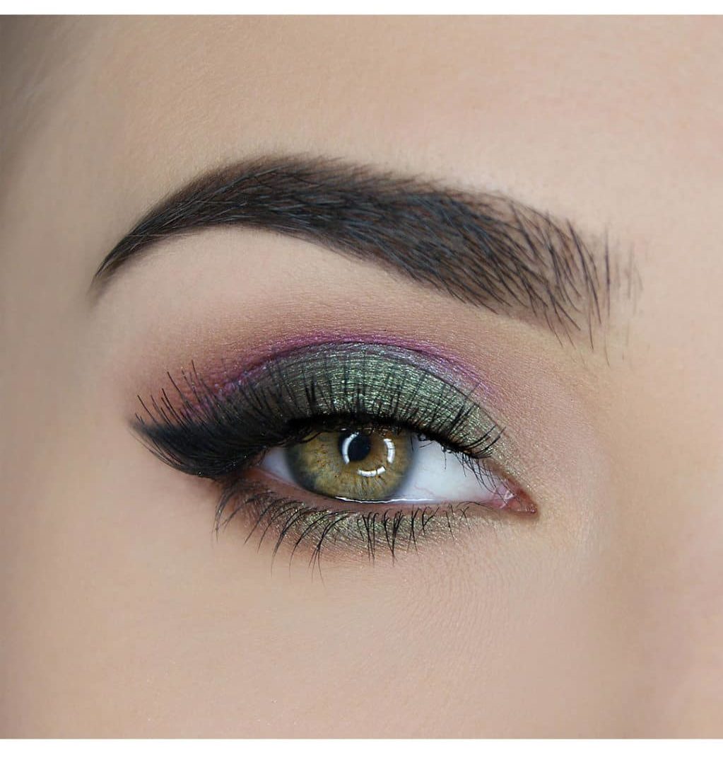 Green makeup wonderfully emphasizes the green shade in olive eyes. This color will highlight the depth and beauty of such eyes.