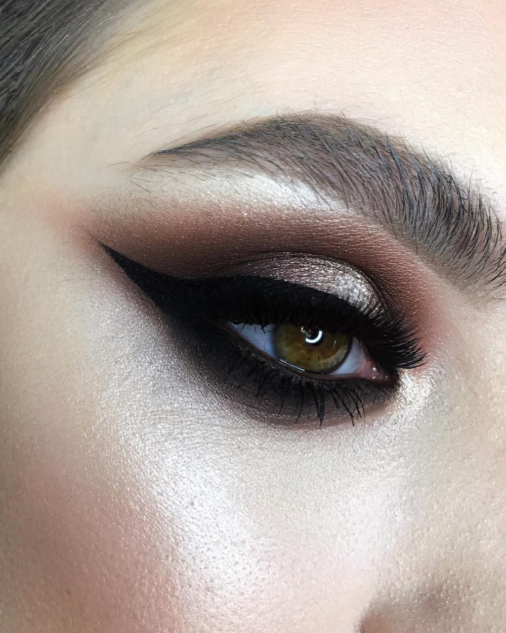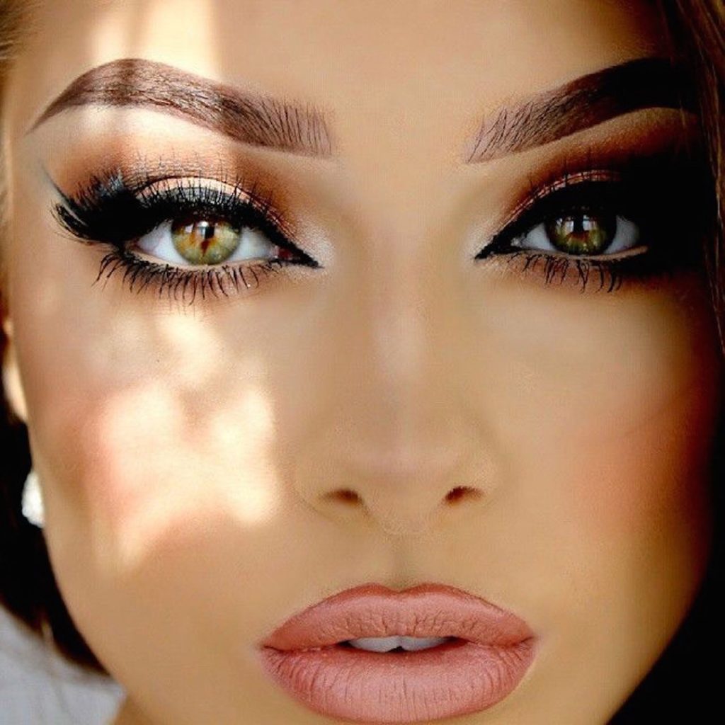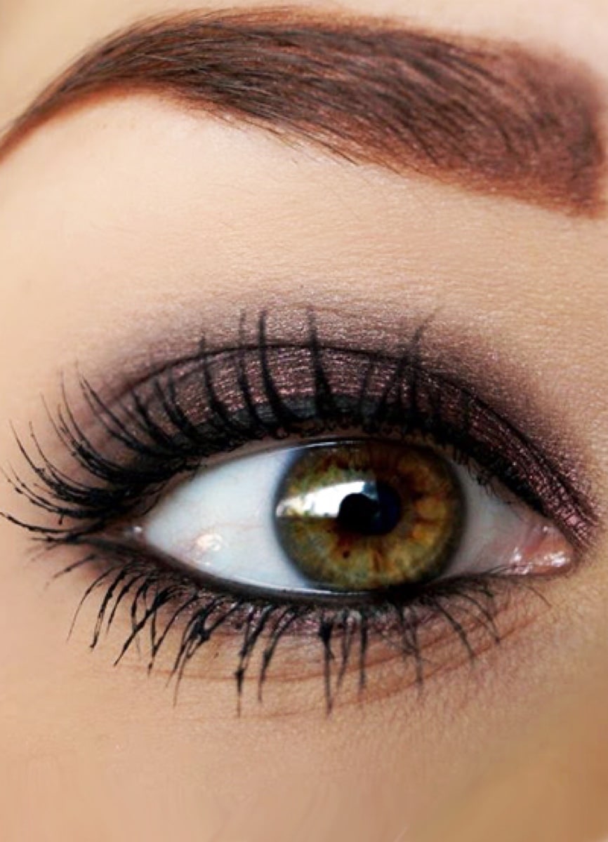 Makeup performed by dark shades of shades will look great on girls with olive eyes. In addition, dark colors are great for all color types. Choose them only from your color preferences. It can purple, brown, gray, dark green colors of shadows.
