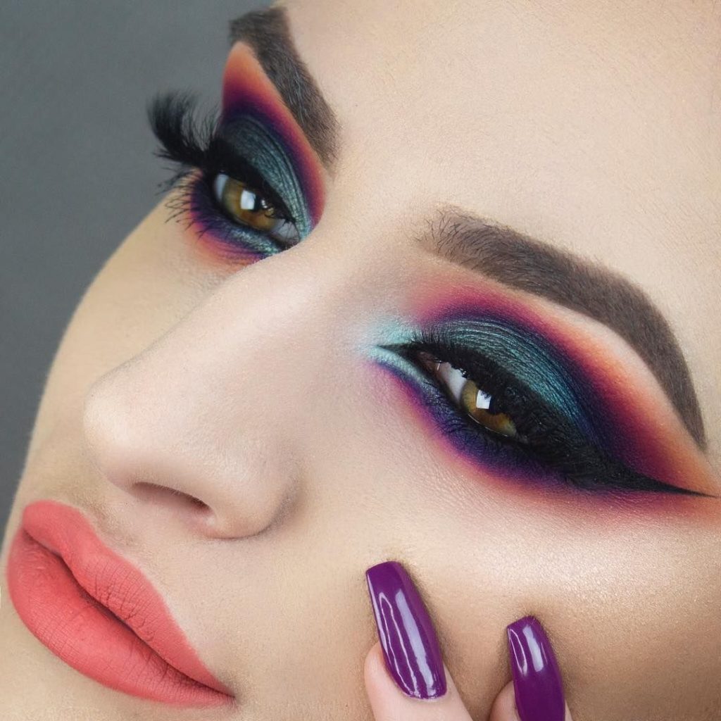 Multi-colored makeup for olive eyes is like a lifebuoy for those who want all the colors at once. Girls with such eye color can afford such a daring and impulsive impulse in choosing makeup. Just look at these photos and you will understand how amazing it looks.