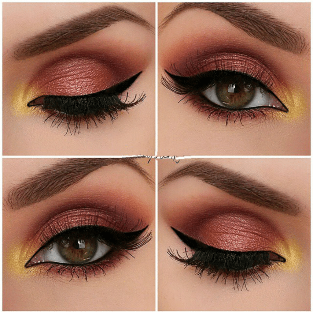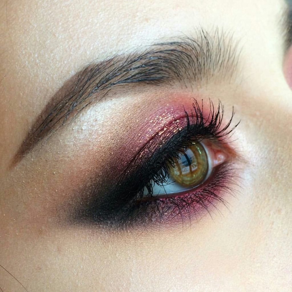 The explosive and stunning effect of red makeup for olive eyes cannot be overlooked. Red color elegantly and incomparably emphasizes the olive color of the eyes.