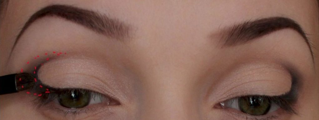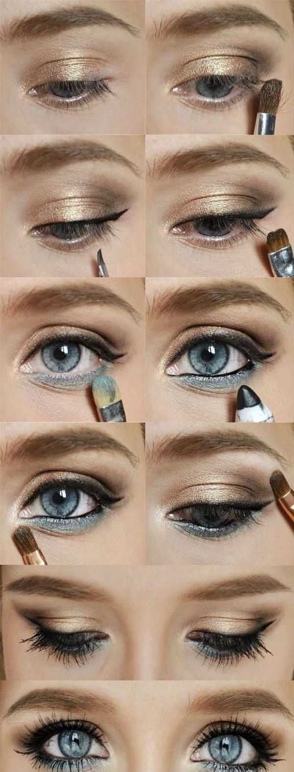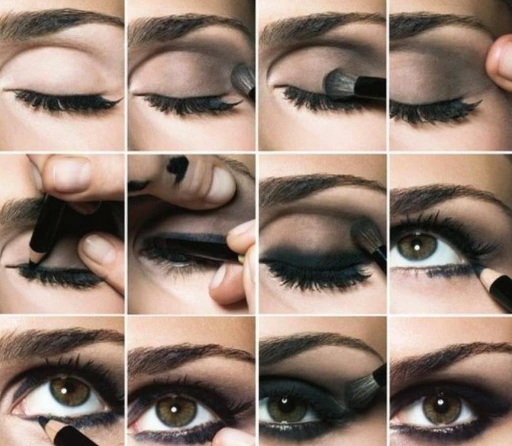 One of the most popular smoky eyes application techniques is perfect for overhanging girls.. Because the outer corner of the eye, highlighted in dark color, perfectly distinguishes the eye itself, adjusting its shape.