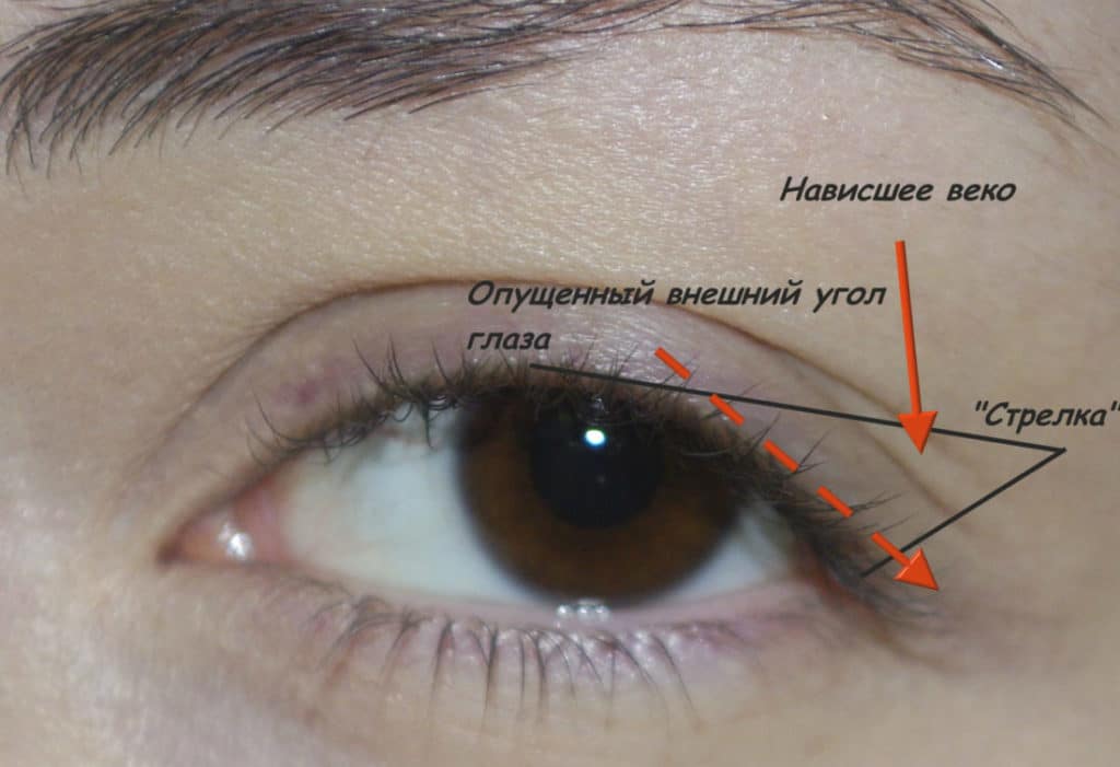 Drooping eyelid - This is a feature of many girls, both young and more mature women. It is expressed in the fact that the eyelid hangs over the mobile eyelid, sometimes almost completely hiding it.