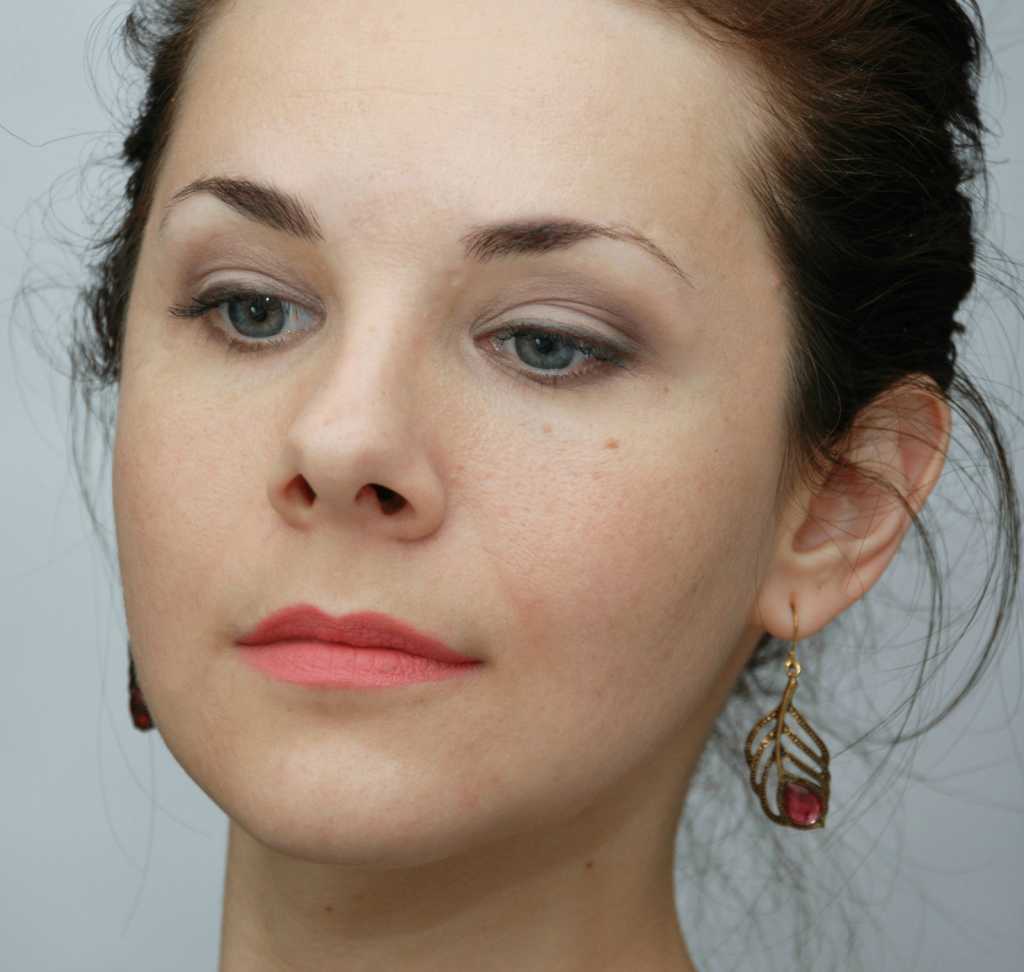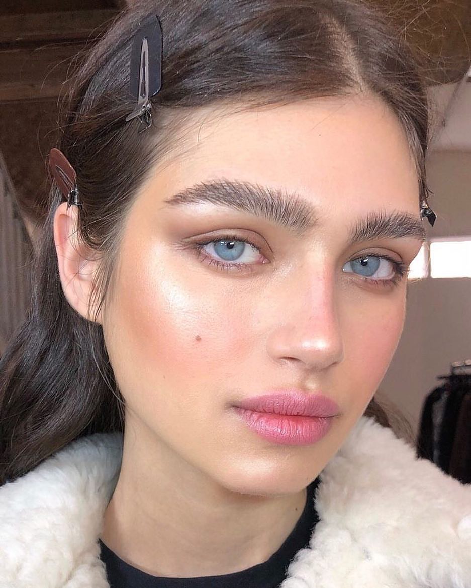 To make your skin shine with a blush as if "from the cold" you will need to put a little blush on your cheekbones. You need to apply them in smooth movements, barely touching the face. Such manipulations will help create the most natural looking radiant blush.