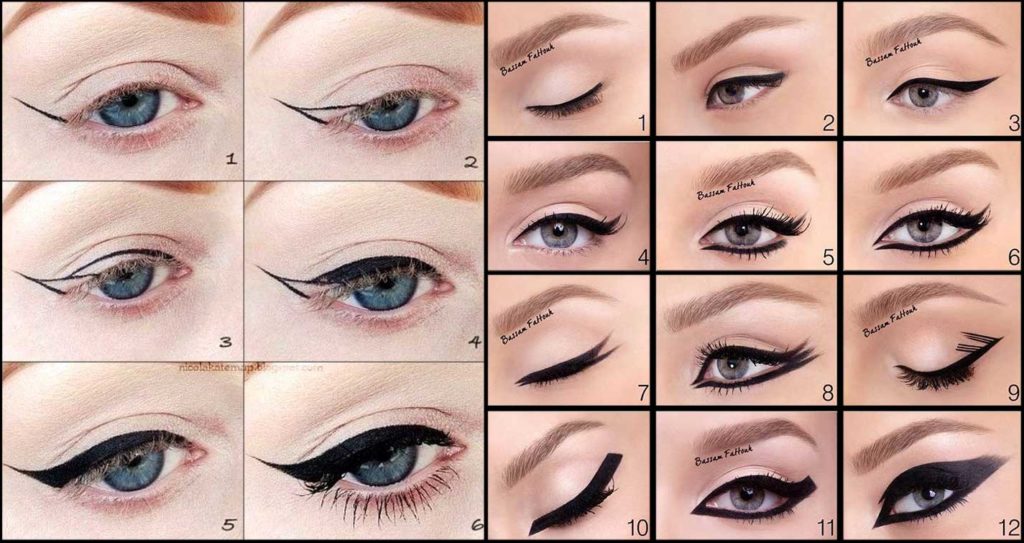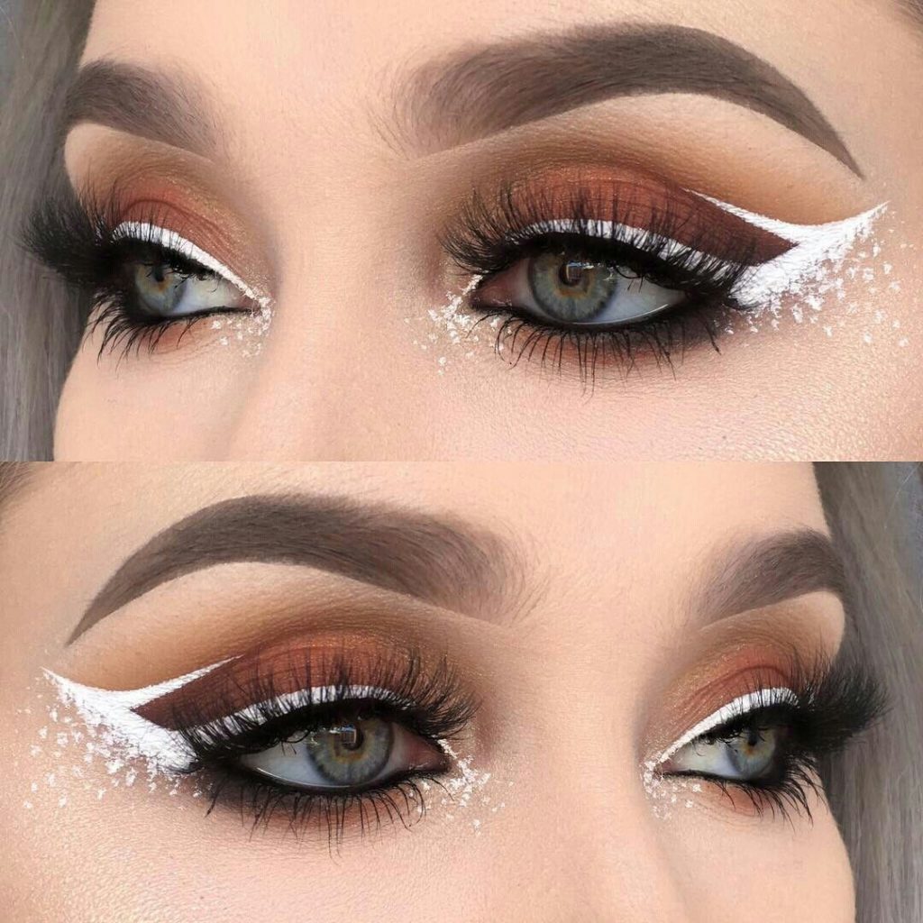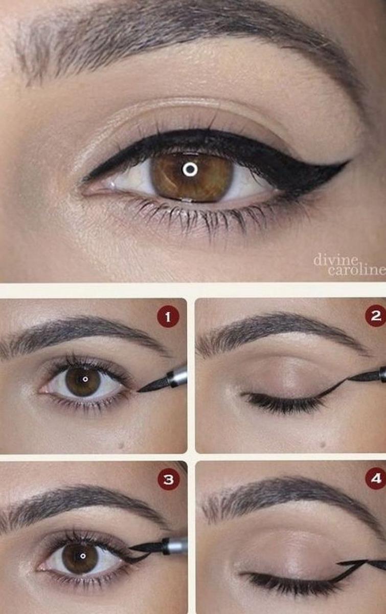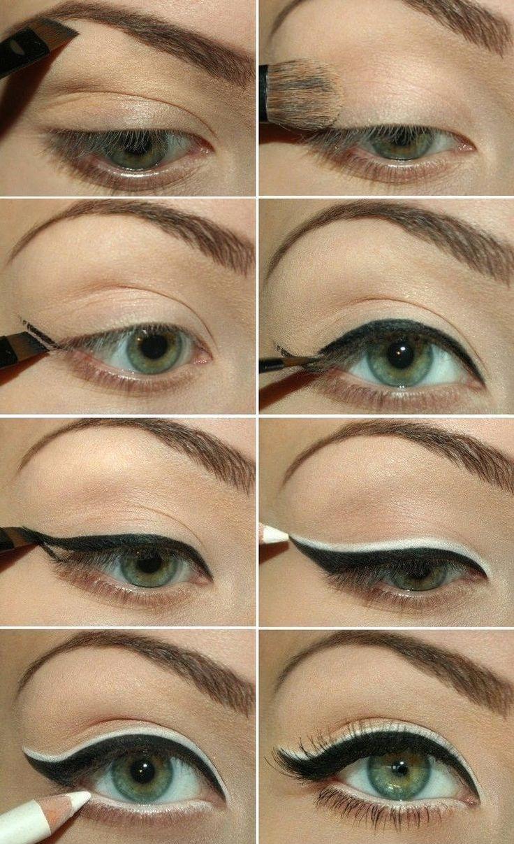 A truly royal make-up can be achieved using the cat-eye arrow technique These arrows suggest their drawing on the upper and lower eyelids with a long, sharp tail in the outer corner of the eye. But you should also make a sharp corner eyeliner in the inner corner of the eye.