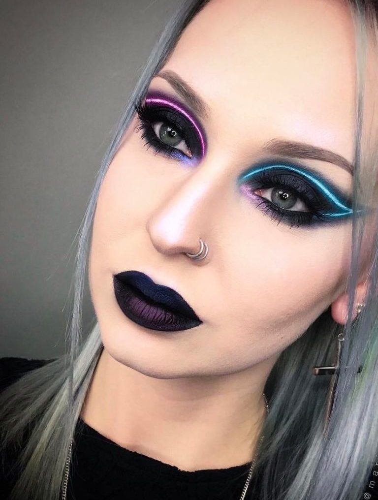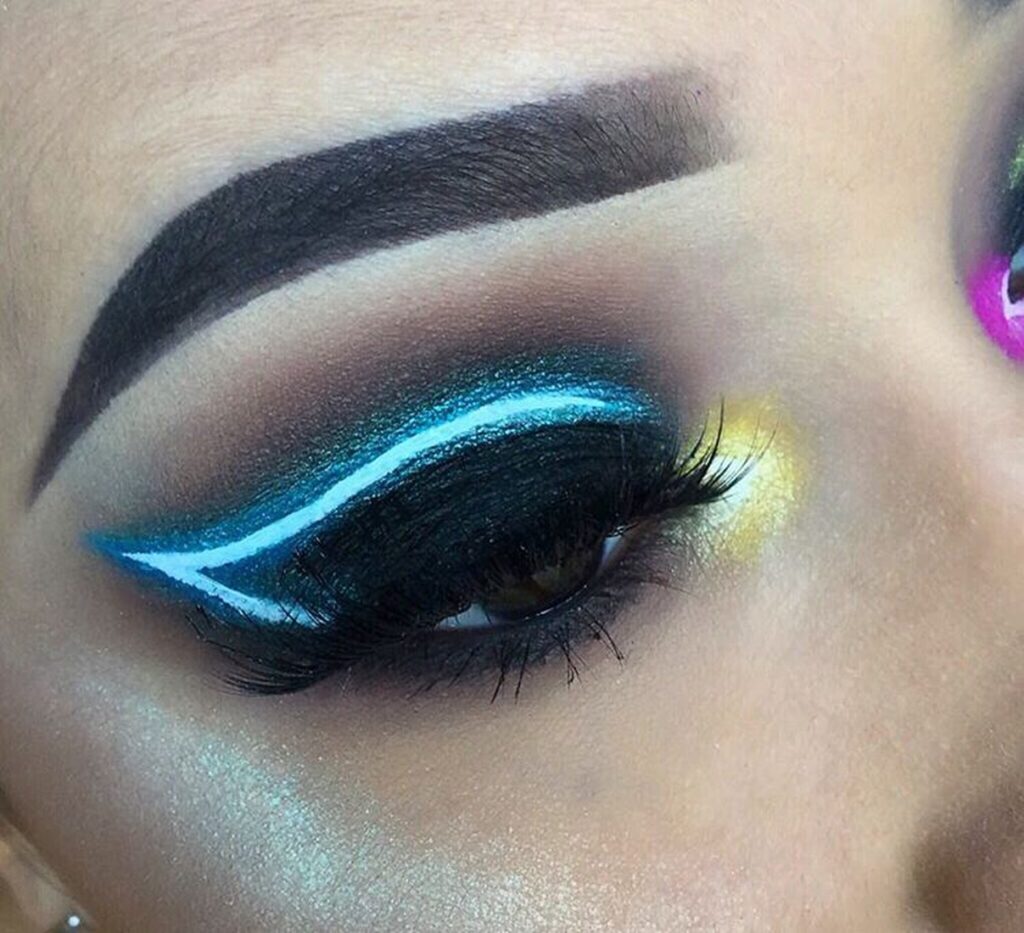 Colored arrows bring some freshness and originality to the makeup. They are perfect for use in summer makeup, where the brightness of the colors just rolls over. You can choose red, blue, green, yellow, violet, brown and other colors of the eyeliner.