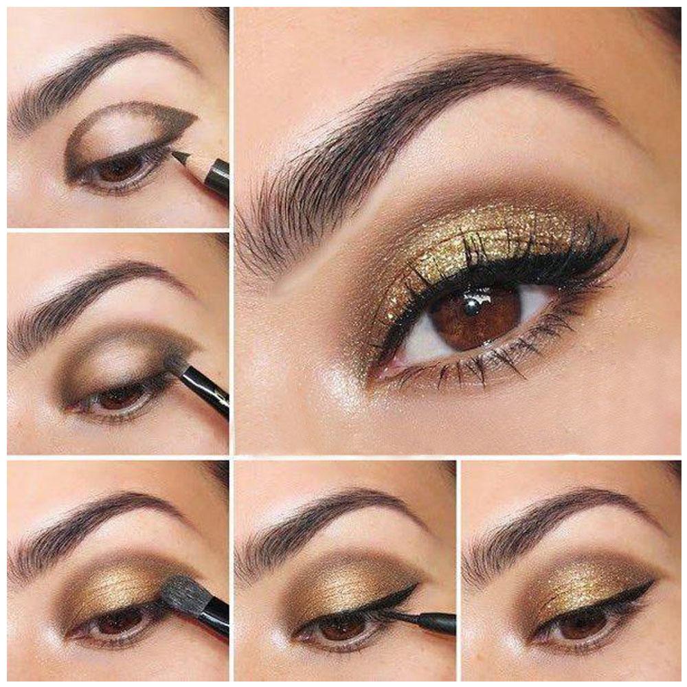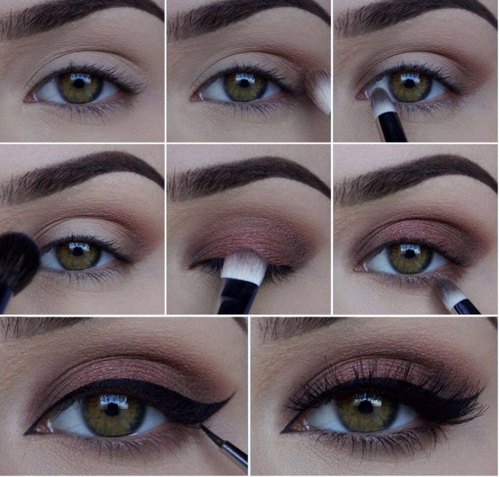 Choose any shadows, everything will depend on the nature of the planned event. If this is an evening make-up, then you can choose dark, saturated shadows or shiny shadows with glitter. For more everyday make-up, light, beige, brown, peach, gold and soft color shades of shades are best suited.